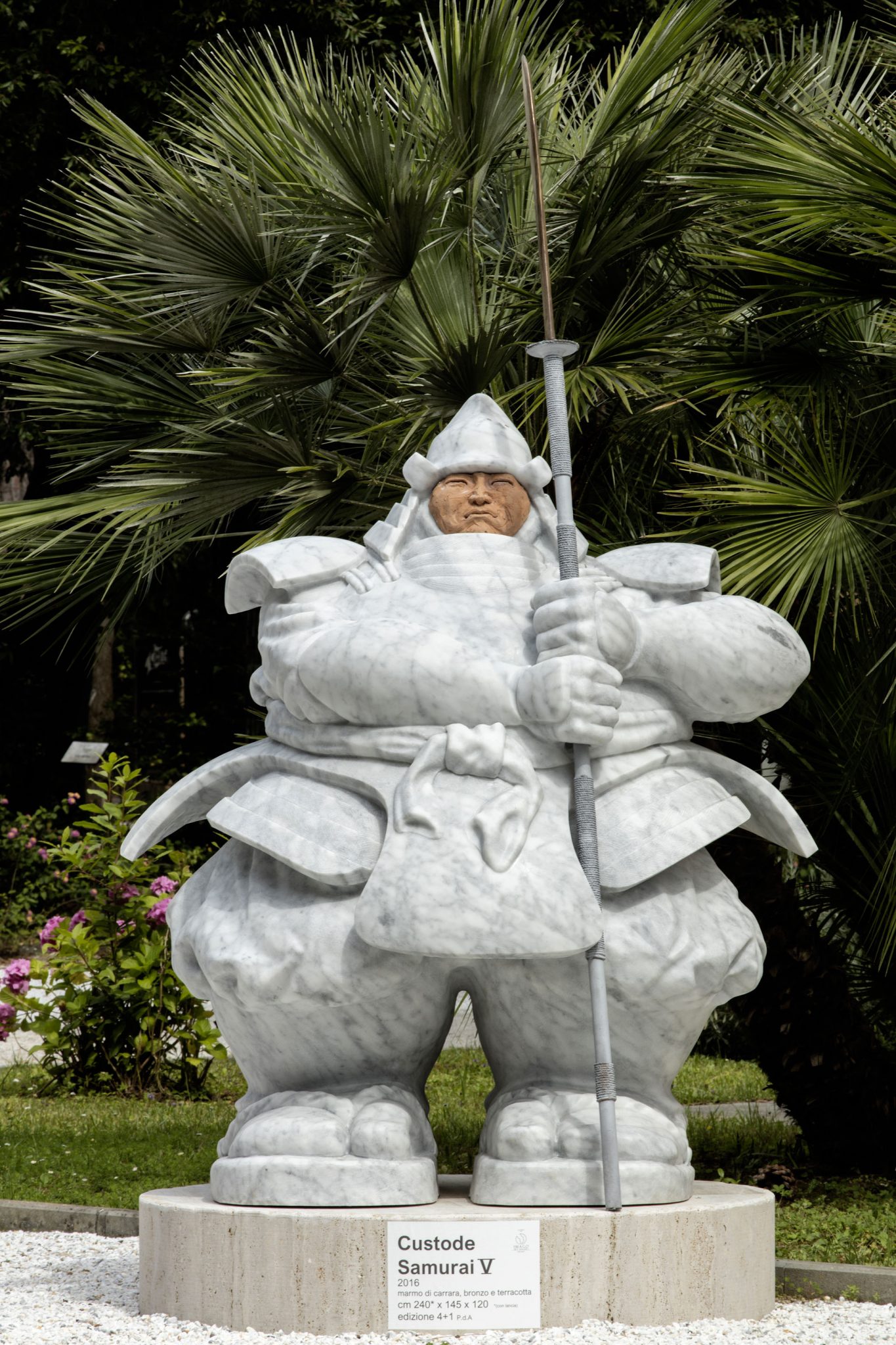 In risposta alla battaglia esistenziale degli Extra Moenia ecco tre Custodi (due realizzati in marmo di circa 2,5 metri di altezza e uno in marmo di Carrara dal peso di oltre 2 tonnellate), presenze imponenti e tondeggianti ispirate alle più diverse culture. Sono figure ieratiche dalla solida e rassicurante corporeità e in cui le armi e le corazze diventano la metafora di una raggiunta sicurezza interiore. Pugliese interviene in questa serie stravolgendo le proporzioni e i canoni classici per definire un nuovo stile: corpi possenti e centrati, piedi enormi, visi decisi e sguardi consapevoli.