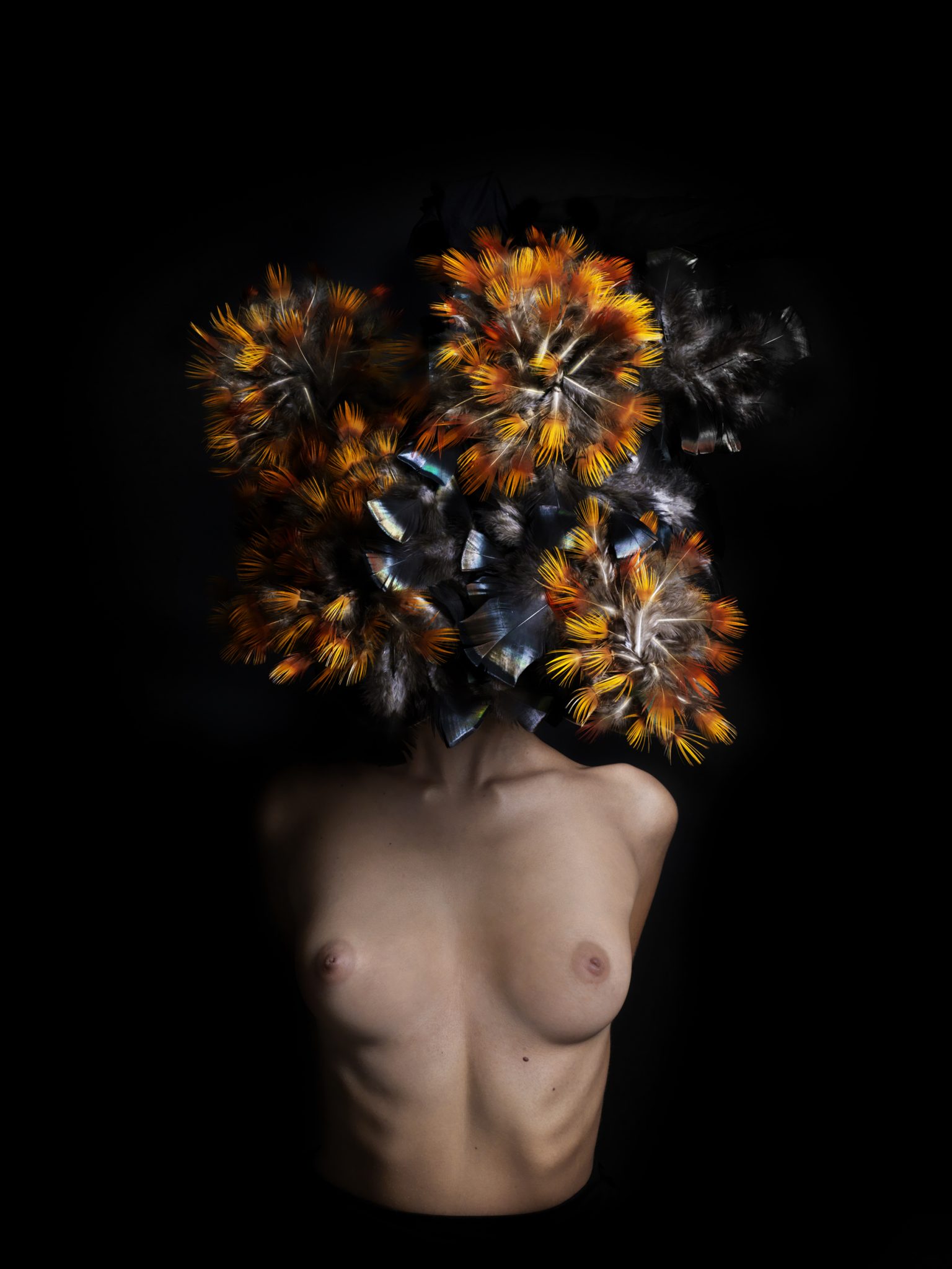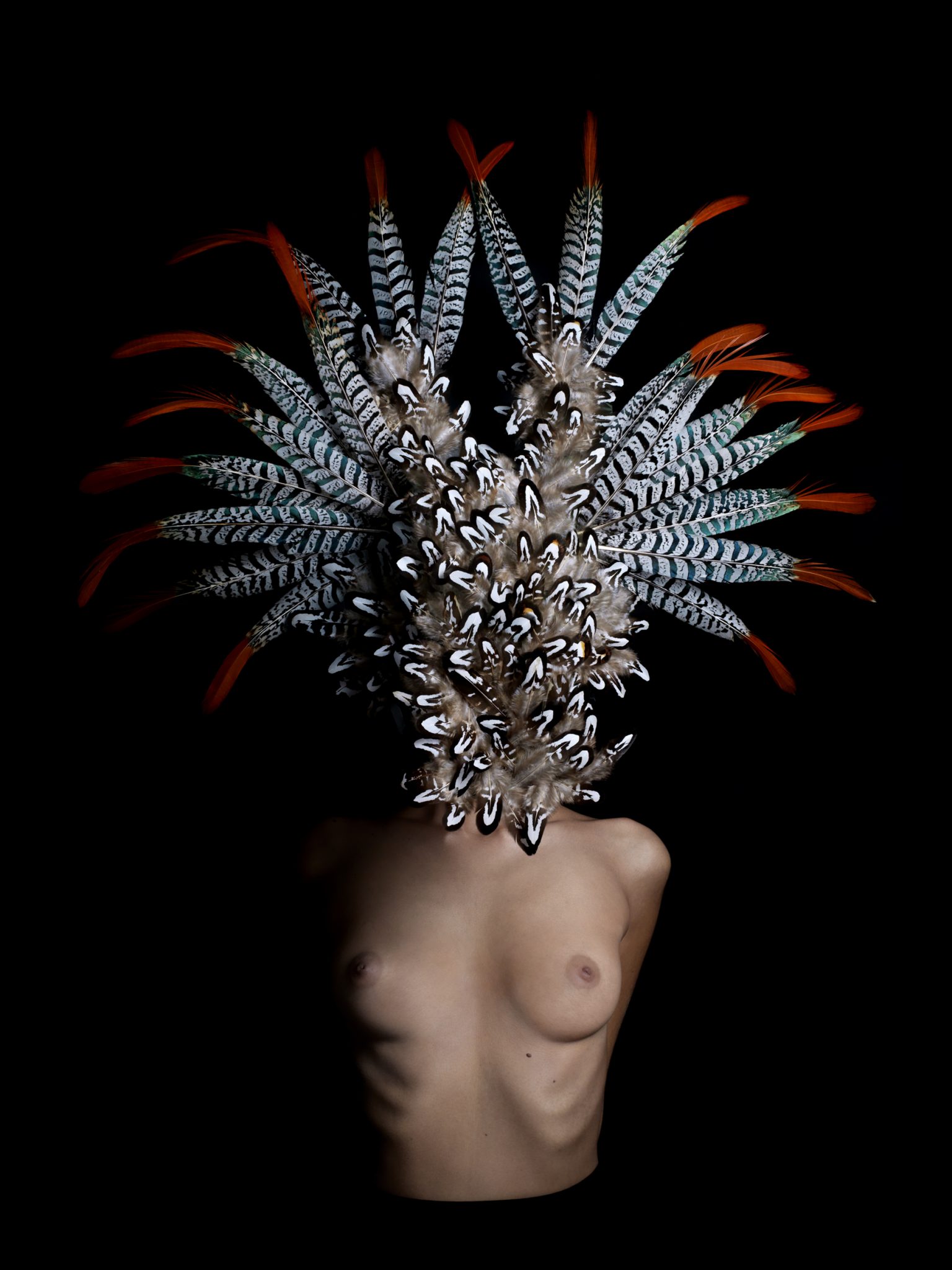 Le maschere fanno assomigliare le donne a dei totem fatti di fiori, frutta e piume, divinità incombenti, altere e ipnotiche in cui le forme bizzarramente animalesche hanno qualcosa di primitivo e di ancestrale, ma che si distinguono anche per l’eleganza della postura e lo sfarzo della composizione, magicamente dominata da un lussureggiante mondo vegetale.