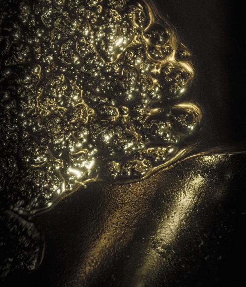 La serie – 60 variazioni selezionate dalle prove fatte per “Portrait of Duration – Cesium Series” – presenta i passaggi dallo stato solido a quello liquido del Cesio 133, elemento il cui decadimento radioattivo è stato usato a partire dal 1967 per stabilire la durata del secondo universale negli orologi atomici. Registrando il suo processo di trasformazione, ciascuna fotografia rappresenta il tempo attraverso la materia, e restituisce in modo speculare lo stato della materia a un certo tempo T. Melik Ohanian investiga così l’osservazione e la rappresentazione della misura del tempo, e in particolare della sua unità di riferimento: il secondo. Sebbene il tempo rimanga un concetto relativo e astratto, queste immagini ne costituiscono “un ritratto attraverso la rappresentazione della materia che lo definisce” in una sorta di “tautologia fotografica”, come l’ha definita l’artista. Invece che semplicemente indicare o misurare il tempo, ce lo mostrano. È “una ricerca di uno stato di consapevolezza”: un’oscillazione tra scenari cosmici e mentali, che richiamano i paesaggi surrealisti di Max Ernst.