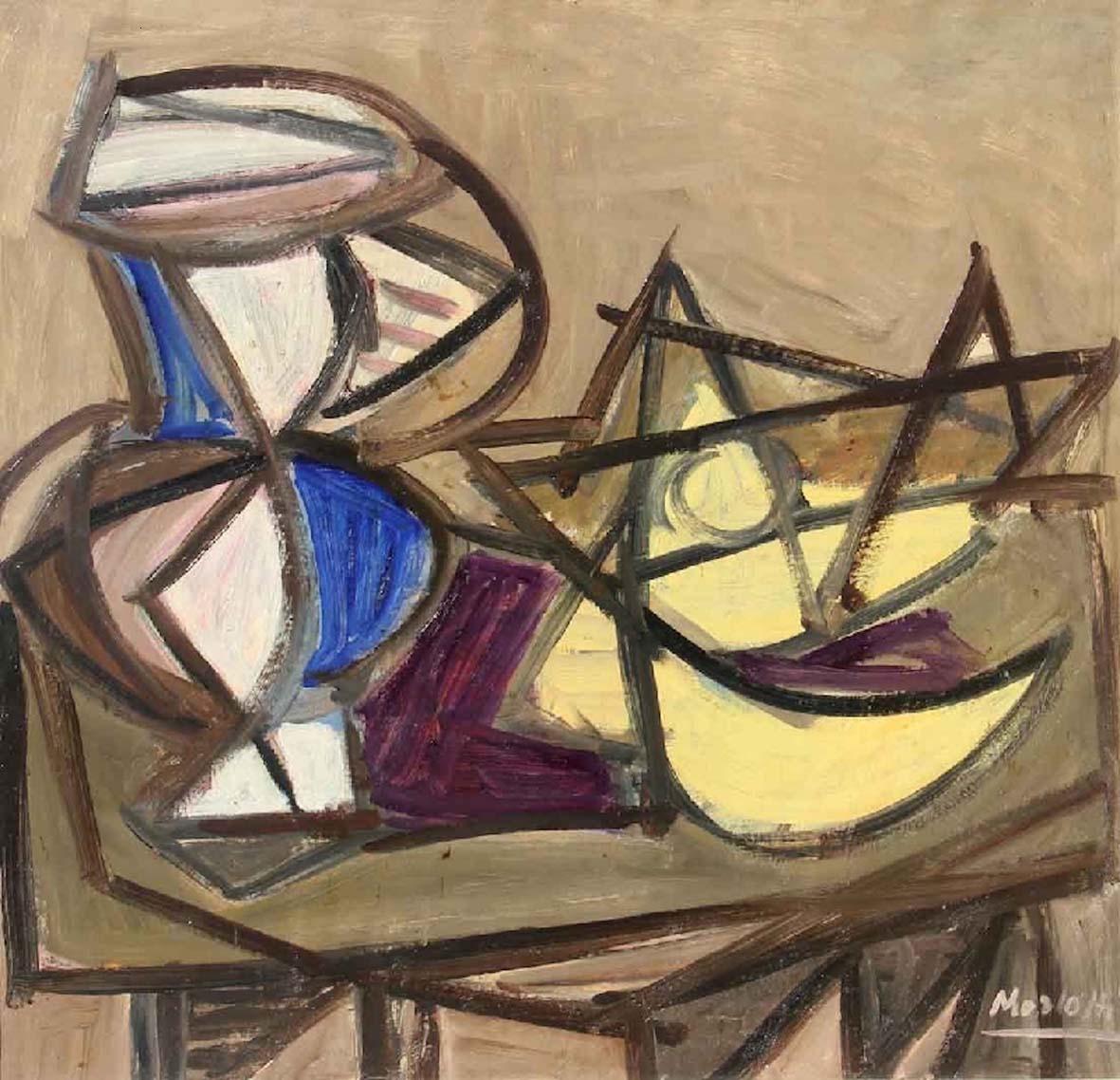 La mostra prende avvio da due importanti esemplari di quella stagione morlottiana, la citata Natura morta del’42 e Dossi del 1946. Attraverso le opere esposte si seguirà l’evoluzione di Morlotti, che rielabora e assorbe gradualmente la pittura di Morandi entro uno stile proprio e autonomo. Infatti, superato l’intenso confronto con Picasso che, dopo le giovanili prove morandiane, caratterizza la produzione del pittore degli anni Quaranta, in perfetta contiguità di tempi con il generale orientamento neo-cubista dell’arte italiana intorno alla fine della seconda guerra, l’artista approda intorno alla metà degli anni Cinquanta alle prime sue prove autenticamente originali, ove matura uno stile affatto peculiare, caratterizzato da una intera immersione nel magma di una natura composita (calato, dirà di sé, “come un insetto in mezzo alle cose”) attraverso una grande intensità materica e ricchezza cromatica.