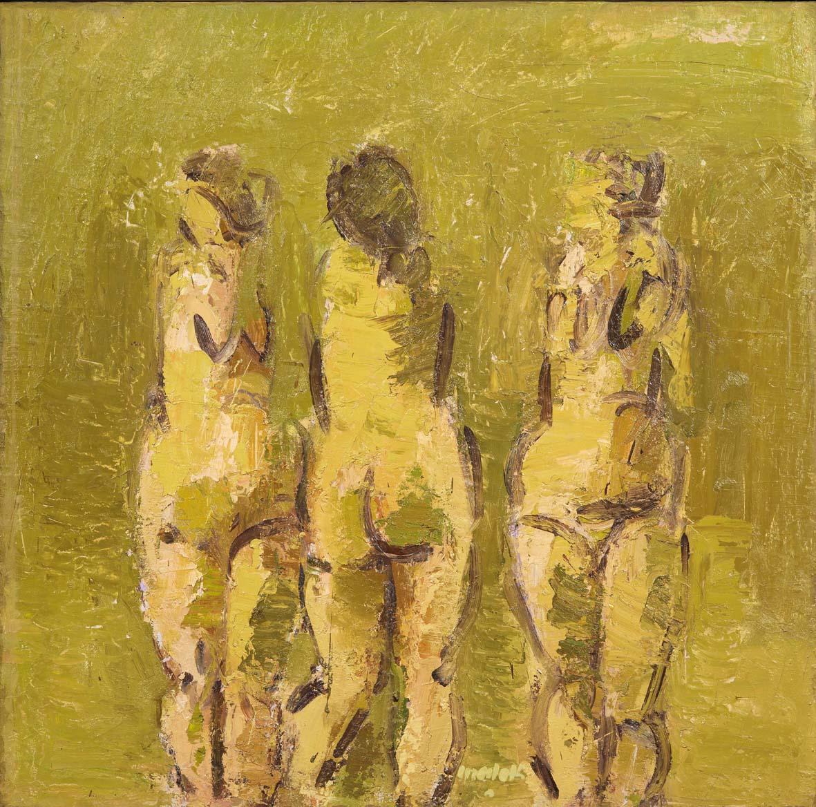 Con esse Morlotti rielabora le potenti composizioni del maestro che, superato Morandi, più interessa il pittore, ovvero Paul Cézanne. Le tre straordinarie prove delle serie cruciali di quegli anni presenti in mostra – Nudi, Granoturco e Adda a Imbersago – documentano questo snodo fondamentale; così come la sequenza di dipinti di Rocce, che copre l’intero arco di lavoro dell’artista su quel motivo, dalla metà degli anni Settanta ai tardi anni Ottanta, mostra la centralità dell’idea di serialità mutuata da Monet, che – come già in Morandi e soprattutto in Cézanne – non è mera variazione sul tema ma indagine insistita alla ricerca di un grado sempre più profondo di penetrazione della natura e del tempo del suo svelarsi.