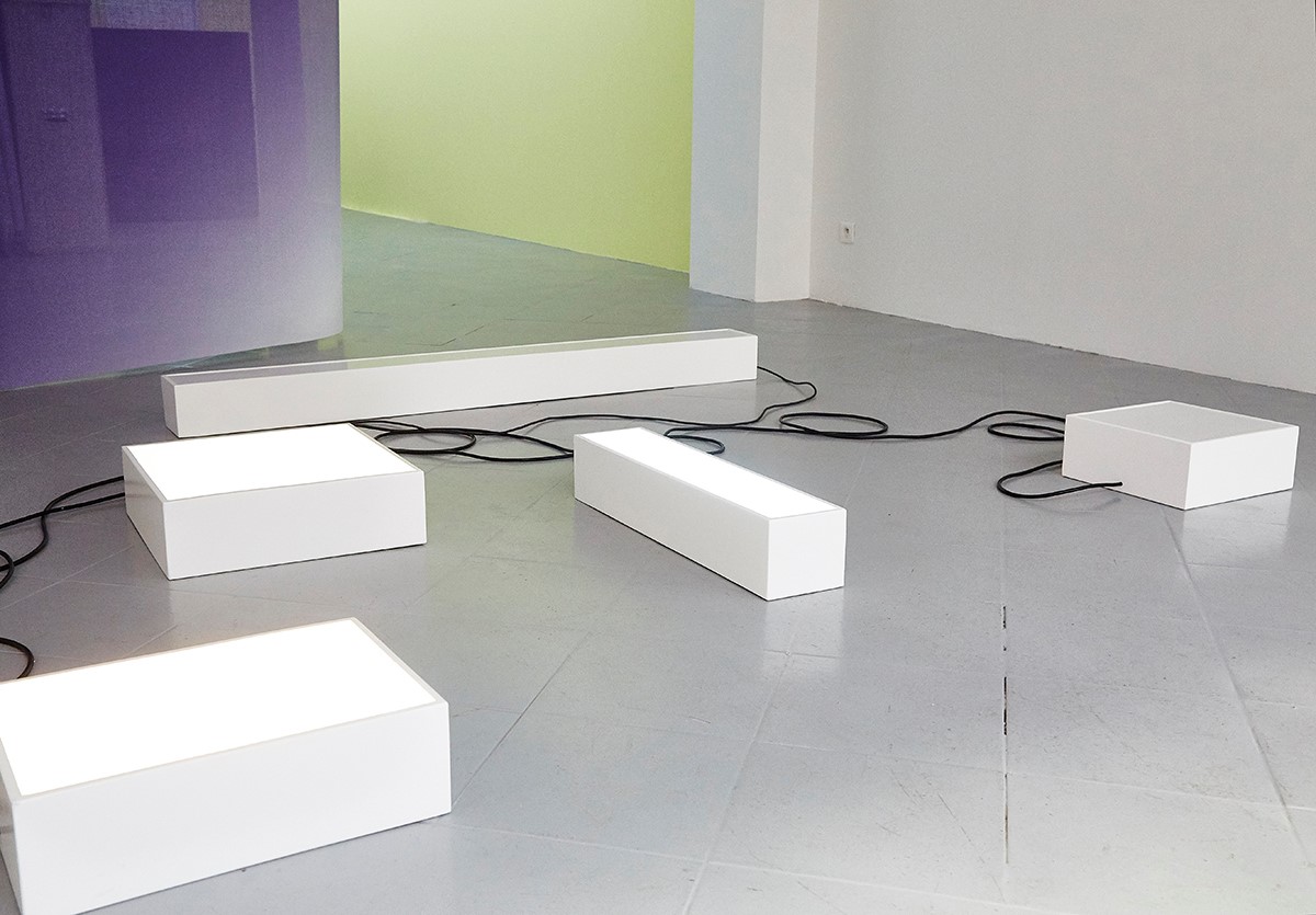 Formatosi alla Scuola d’Arte di Rueil-Malmaison et alla Scuola di Arti Decorative di Parigi, Quentin Lefranc interroga la pittura, i suoi esiti e i suoi significati al giorno d’oggi, da un punto di vista trasversale e pluridisciplinare, ridefinendone i limiti nell’incontro con musica, teatro, scultura e design, riportando alla vita quell’antica ispirazione wagneripana di un’opera d’arte totale. Una Gesamtkunstwerk dell’epoca contemporanea, dove a convergere sono intensità luminosa e volume musicale, gli stessi volumi modulari del FOLIO di Earl Brown, compositore della scuola newyorkese degli anni Cinquanta: così potremmo definire l’installazione che Quentin Lefranc propone nello spazio della Galleria Pauchant, perché di spazio si parla, di zona, di territorio luminoso. Incomplete Canvas, Beyond notation e Background n°1, tre opere distinte dell’artista trovano in questo contesto e incontro spaziale, un significato specifico, rifiutando di definirsi installazione in situ quanto piuttosto in tempore, per un attimo insieme, incontro puntuale e noncurante del proprio materialismo né di quella sacralizzazione feticista tipica dell’opera d’arte.