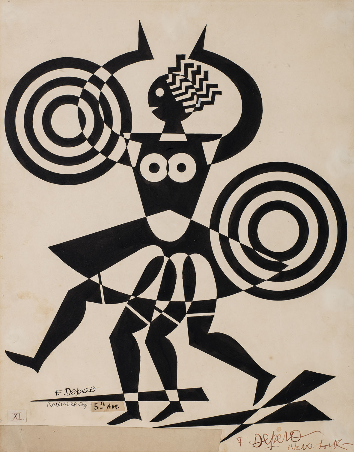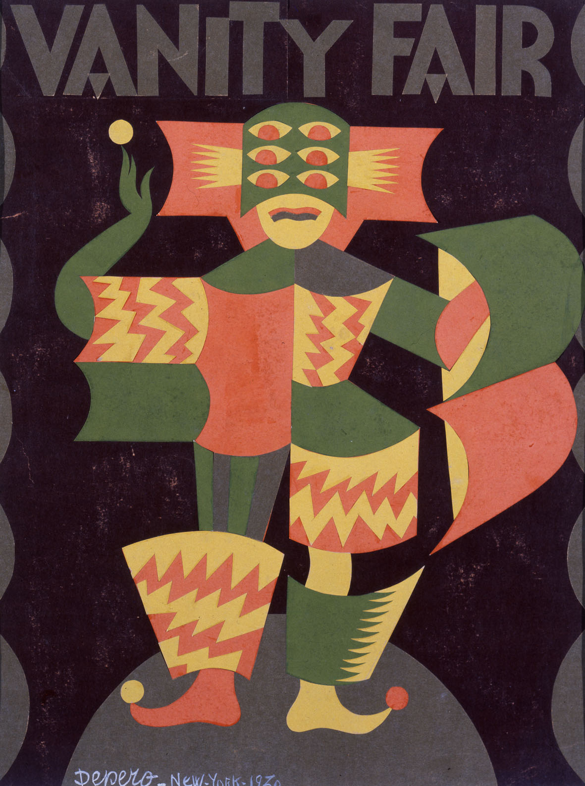 Nel 1928, dopo i successi ottenuti nelle principali esposizioni nazionali e internazionali, Depero e Rosetta si trasferiscono a New York. Il loro soggiorno negli Stati Uniti dura ventiquattro mesi, dal novembre 1928 all’ottobre 1930. Qui l’artista apre la Depero’s Futurist House, una sorta di filiale americana della casa d’arte di Rovereto. Incontra dopo dieci anni Leonide Massine direttore artistico del Roxy Theatre che lo coinvolge come scenografo.