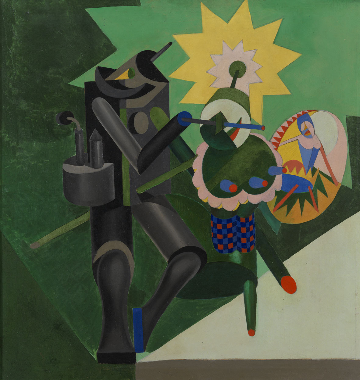 Il teatro magico inizia col balletto Chant du rossignol commissionato nel 1916 a Depero da Sergei Diaghilev, e prosegue coi Balli plastici, nati dalla collaborazione con Gilbert Clavel. Il movimento sulla scena dell’automa è meccanico e rigido, le marionette riportano ai valori dell’infanzia, del sogno, del gioco, del magico.