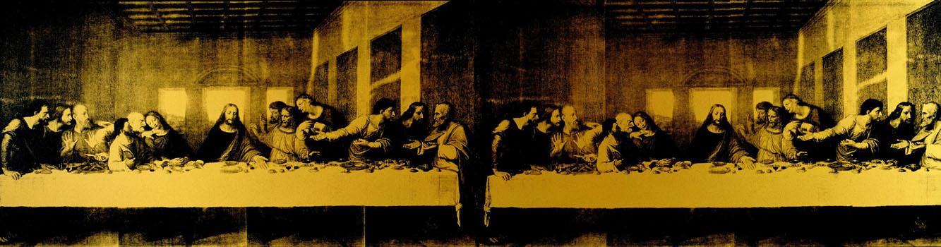 Warhol realizzò tra il 1985 e il 1987 una serie di opere dedicate al Cenacolo di Leonardo – oltre cento tra dipinti e serigrafie. Sixty Last Supper mette in risalto la componente fondamentale della poetica warholiana: la serialità che si afferma sul carattere fondamentalmente originale delle opere d’arte. In termini benjaminiani si tratta del valore espositivo versus il valore cultuale delle opere d’arte. Intento, quindi, a demistificare l’opera d’arte e il suo essere un “pezzo unico”, il celebre artista pop tratta anche l’Ultima cena di Leonardo, al pari di altri soggetti come la Campbell’s Soup, la Brillo Box e la Coca Cola, ossia come prodotti.