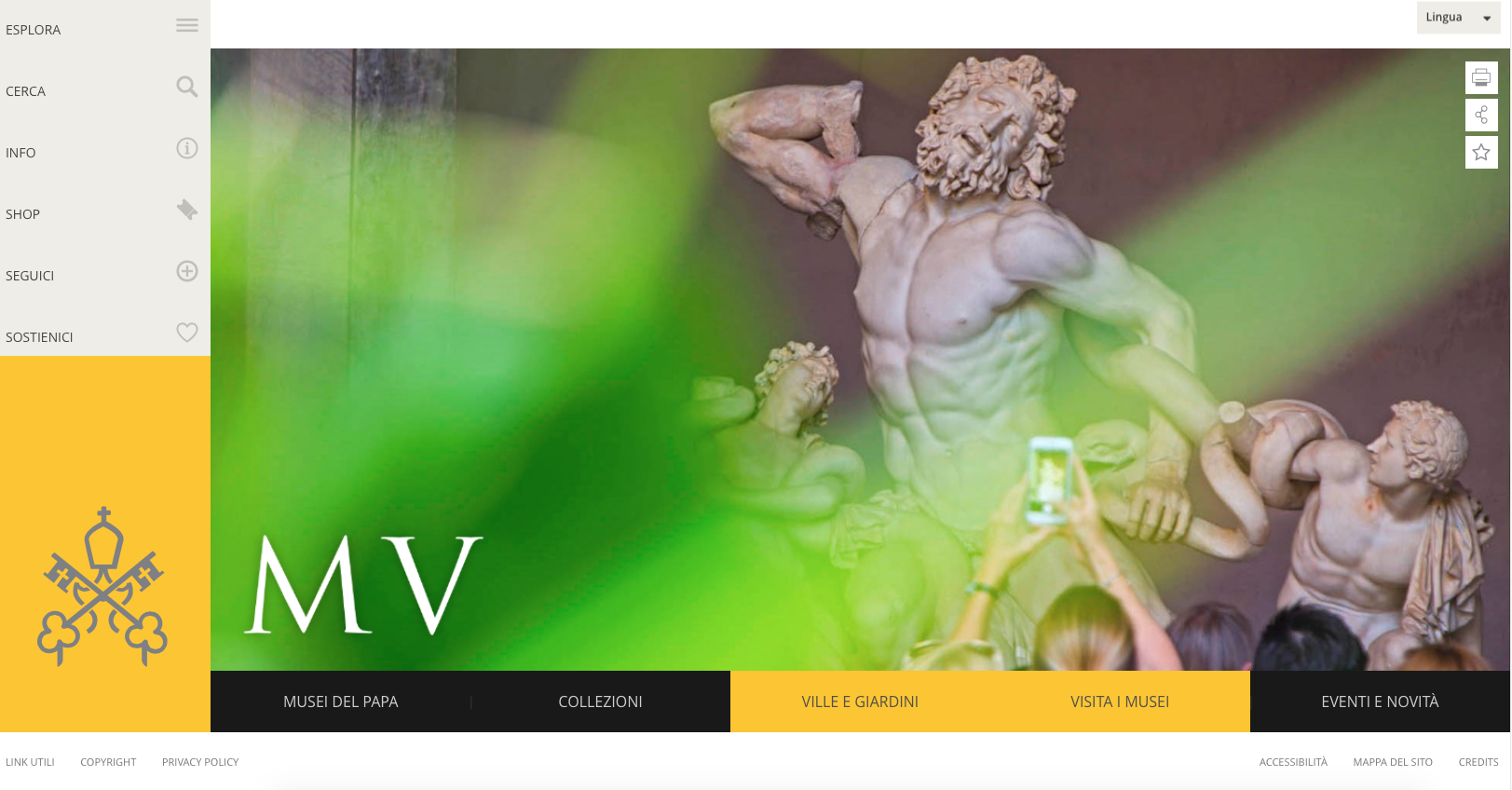 Quasi 13 mila pagine da navigare in 5 lingue, 4 mila opere pubblicate, 3.071 immagini, più di 600 schede per lingua, tour virtuali, contenuti multimediali, notizie e biglietti online. Il sito dei Musei Vaticani www.museivaticani.va, dopo tre anni di lavoro, ha cambiato veste e contenuti ed è navigabile da pc, tablet e cellulari. La neo direttrice Barbara Jatta ha dichiarato: «Il mio sogno è portare online tutte e 200 mila opere delle collezioni».
