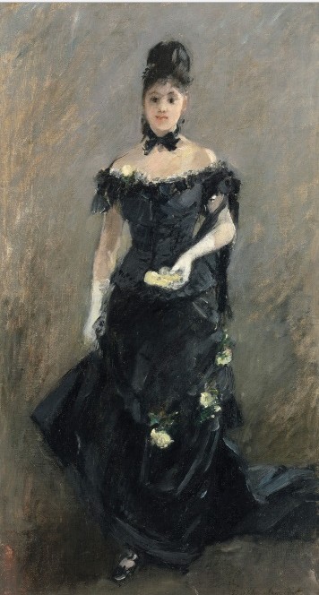 I suoi dipinti raffigurano entrambi due figure femminili, in un caso accompagnata da un bambino, nell’altro ritraente un’elegante giovane donna vestita in nero alla moda. Questo secondo dipinto, “Femme en noir” è uno dei pochi ritratti a figura intera di Morisot ed è senza dubbio una delle opere più celebri, realizzato nel 1875 viene stimato da Christie’s tra le 600,000 e le 800,000 sterline.
