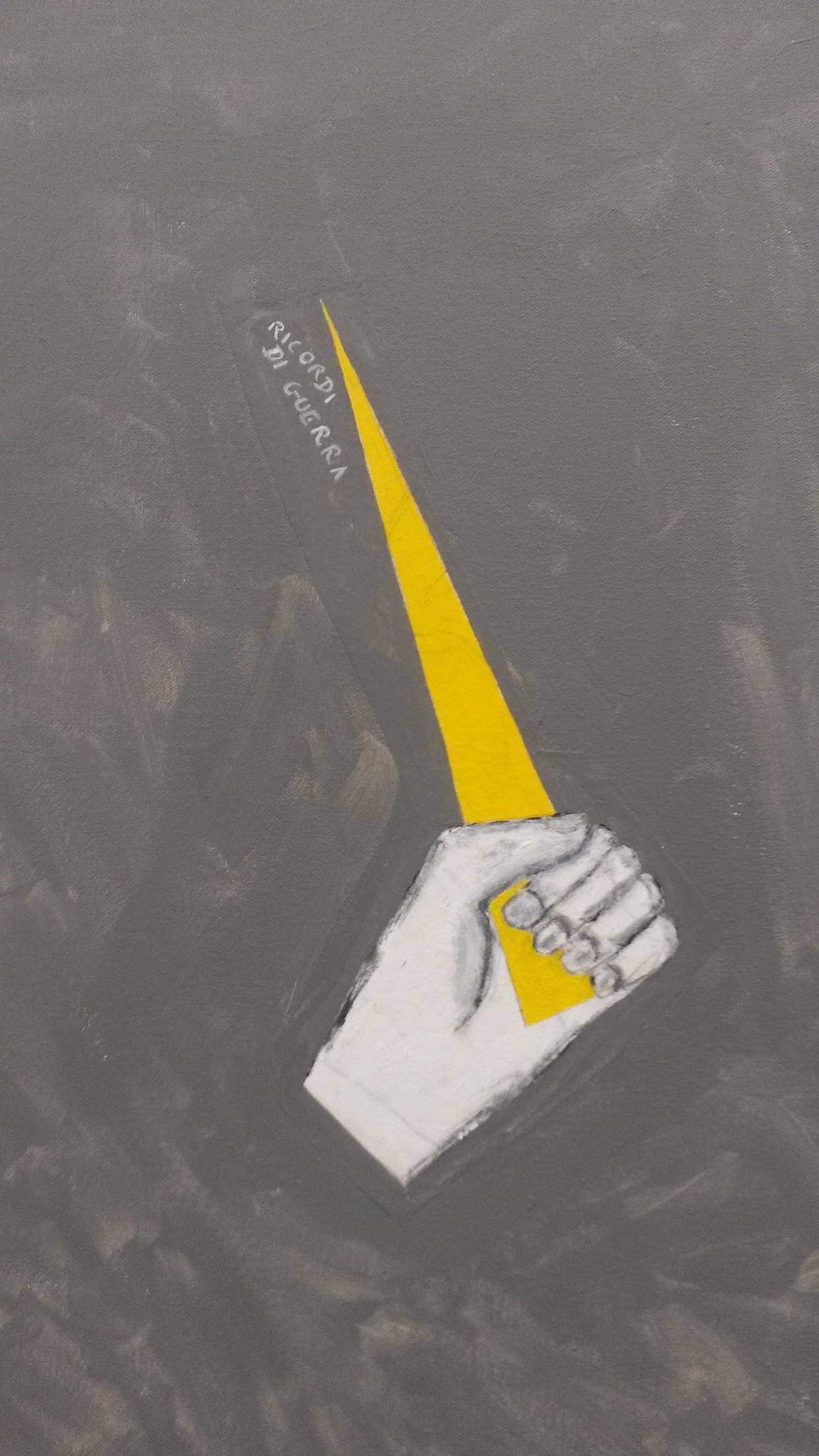 Tatafiore, aggiunge nomi, scritte e frasi nei suoi dipinti; la sua grafia piccola e sottile, appare vicino alle sue figure cartoonizzate, come didascaliche informazioni lasciate lì apposta dagli antichi ceramografi, creando con i suoi sconfinamenti semantici, oscillazioni continue tra la sua storia privata e la storia universale.