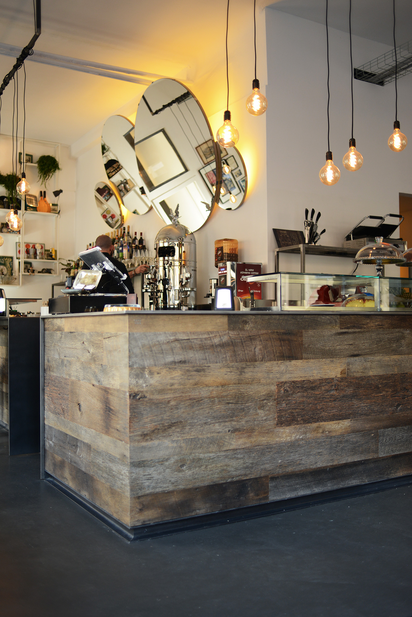 “Ci siamo divertiti a reinterpretare lo stile industrial scandinavo con oggetti vintage rigenerati ed esposti, che animano il locale, intrusioni nordeuropee retrò, attraverso linee pulite e volutamente “naked”, impianti a vista, pavimenti verniciati in modo scostante, per dare la sensazione del vissuto. Tanto verde verticale in sospensione: una nuova vita che vuole crescere in mezzo al cemento. Infine abbiamo fatto in modo che l’illuminazione fosse regolabile in modo da lasciare il locale in penombra alla sera e con una luminosità più accentuata durante il giorno” racconta l’archittetto Ulzi, che ha seguito il progetto.