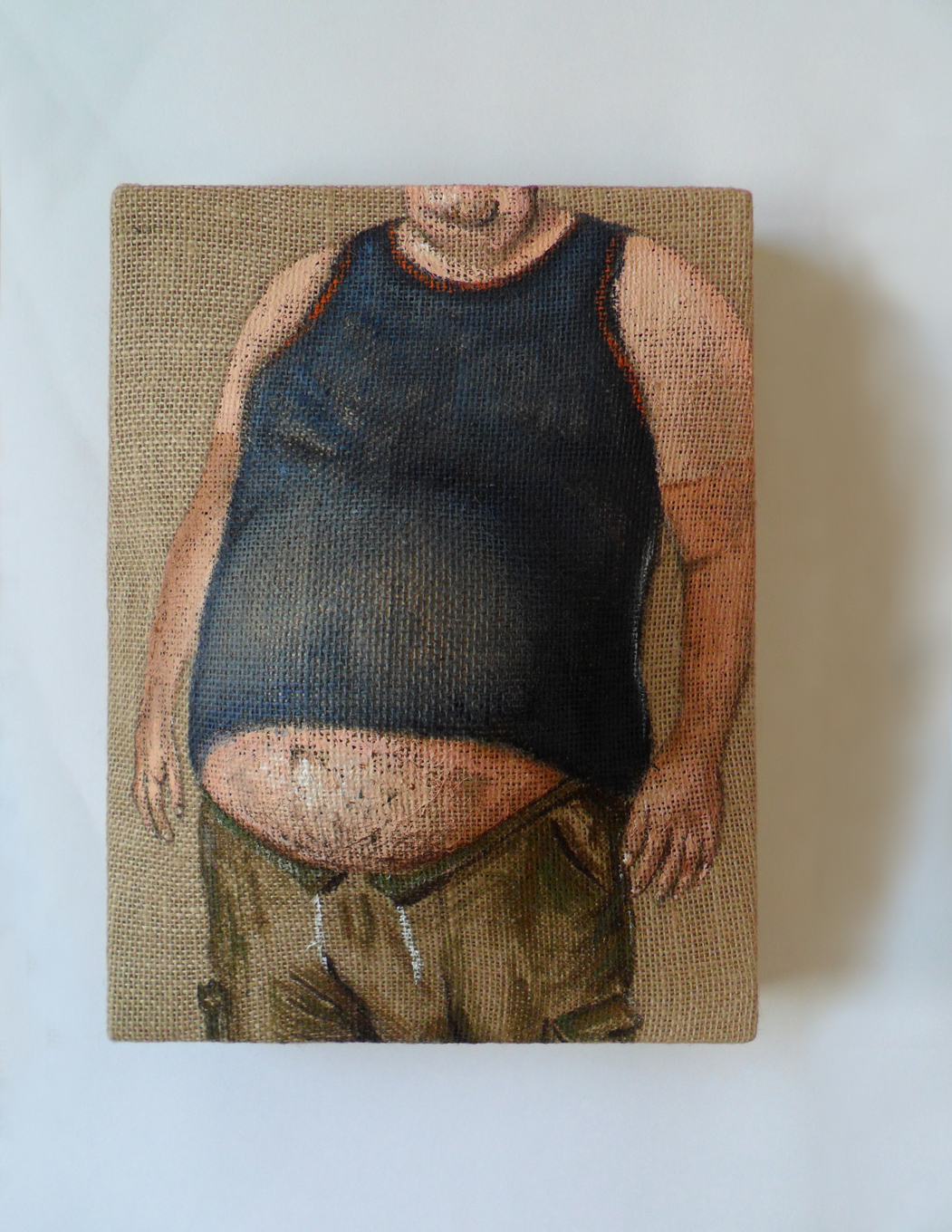 La mostra presenta una selezione di dipinti su tela di juta estroflessa e un corner di opere su carta. Caratteristico dei suoi lavori è un morphing grottesco delle fisionomie, spesso dedotto da immagini fotografiche estrapolate da riviste o da internet, o realizzate dall’artista stesso: la maggior parte delle opere hanno per soggetto volti in close up, catturati e filtrati con l’uso del fisheye.