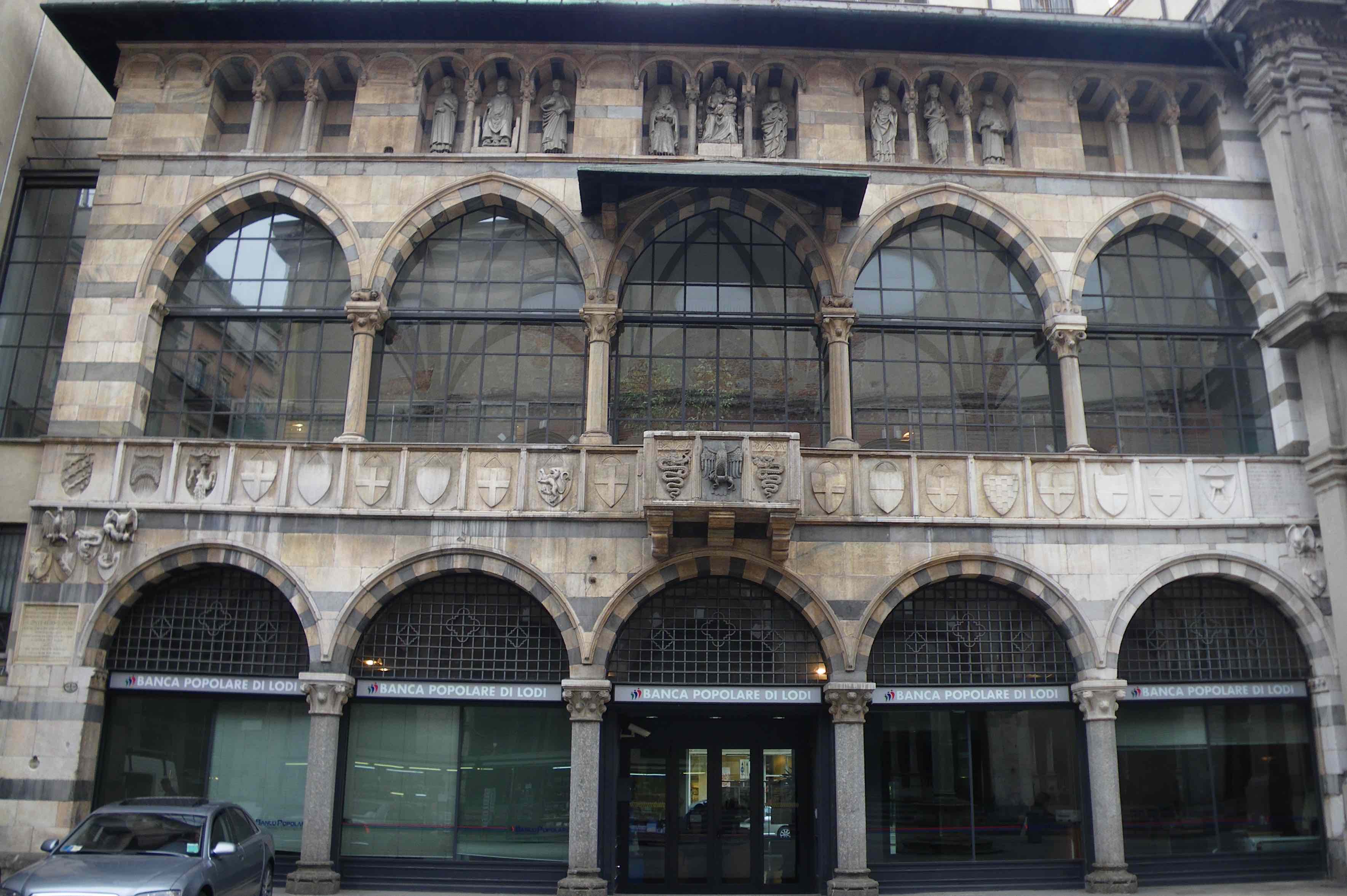 Come ogni città degna di questo nome anche Milano aveva i suoi rioni che facevano capo alle principali porte cittadine, ognuna avente il proprio stemma. Tra il piano terreno e il primo piano della loggia corre un fregio lungo il quale sono scolpiti questi stemmi alternati allo scudo crociato di Milano.