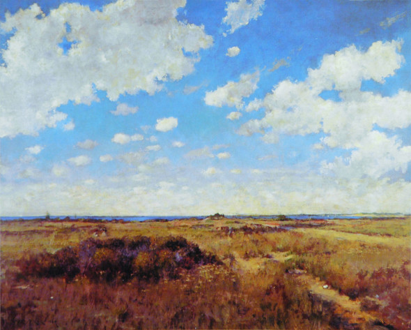 Nella terza sala, la luce bianca veneziana che arriva diretta dalle finestre sul Canal Grande, risalta una serie di grandi ritratti femminili, forse il genere per cui Chase fu più apprezzato dalla critica e dai collezionisti. Dipinte a figura intera, fiere, maestose e moderne, sono donne di quell’alta borghesia americana di cui Chase e la sua famiglia facevano parte, che amava trascorrere il tempo libero a passeggio nei parchi cittadini e la bella stagione nelle spiagge di Long Island. Ed è proprio sulla costa meridionale dell’isola, nei pressi di Southampton, che Chase fonda la Shinnecock Hills Summer School nel 1891, dove, sino al 1902, insegna la composizione en plein air di derivazione impressionista e dipinge paesaggi naturali luminosi, di cui il pubblico può apprezzare una selezione nella sesta sala.