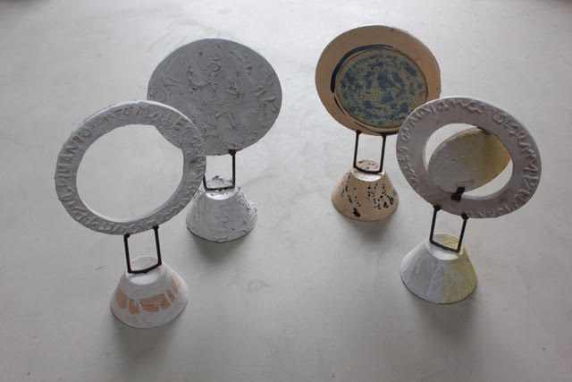 In mostra varie testimonianze della produzione artistica di Antò: i Medaglioni, tondi modellati con le particolari argille della Ravagli e decorati con i ‘segni’ della Campi; una serie dei Libri; i Quadri/tappeto, veri e propri quadri materici; i Fiori pensati sia come opere d’arte sia come centri tavola; finendo con la Scultura da viaggio in serie numerata e le Colonne, un sistema modulare autoportante che può comporre sculture, quindi opere d’arte, ma anche prestarsi a soluzione d’arredo decorativo.