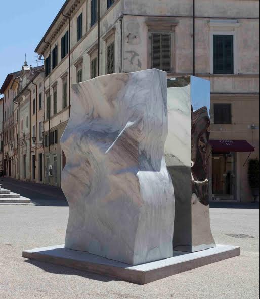 Helidon Xhixha, Simbiosis, 2016, acciaio lucidato a specchio e marmo statuario, pezzo unico