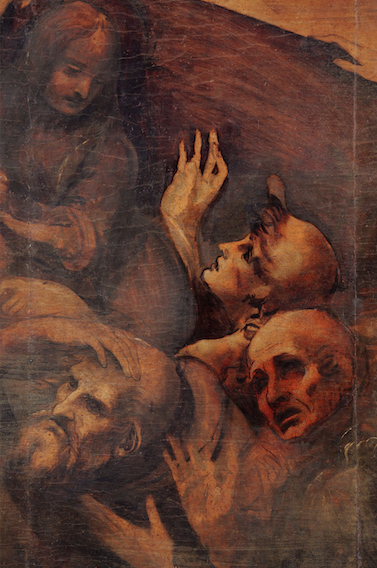 Leonardo da Vinci, Adorazione dei Magi, particolare in fase di restauro dopo la pulitura, Firenze, Galleria delle Statue e delle Pitture degli Uffizi