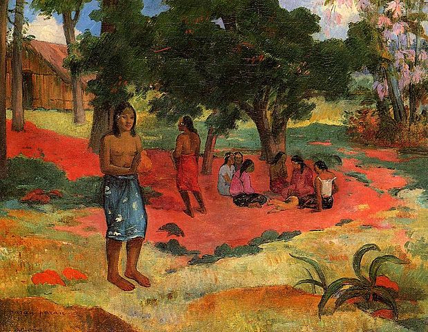 Va evidenziata anche l’attenzione pittorica per la diversità di costumi e attività in cui i soggetti sono impegnati, siano queste connesse alla terra o alla meditazione silenziosa. Un tema quello della comunità in attesa silenziosa che Gauguin riprende in altre opere dello stesso periodo, come “Te Raau Rahi” del 1891 o “Parau Parau” del 1892.