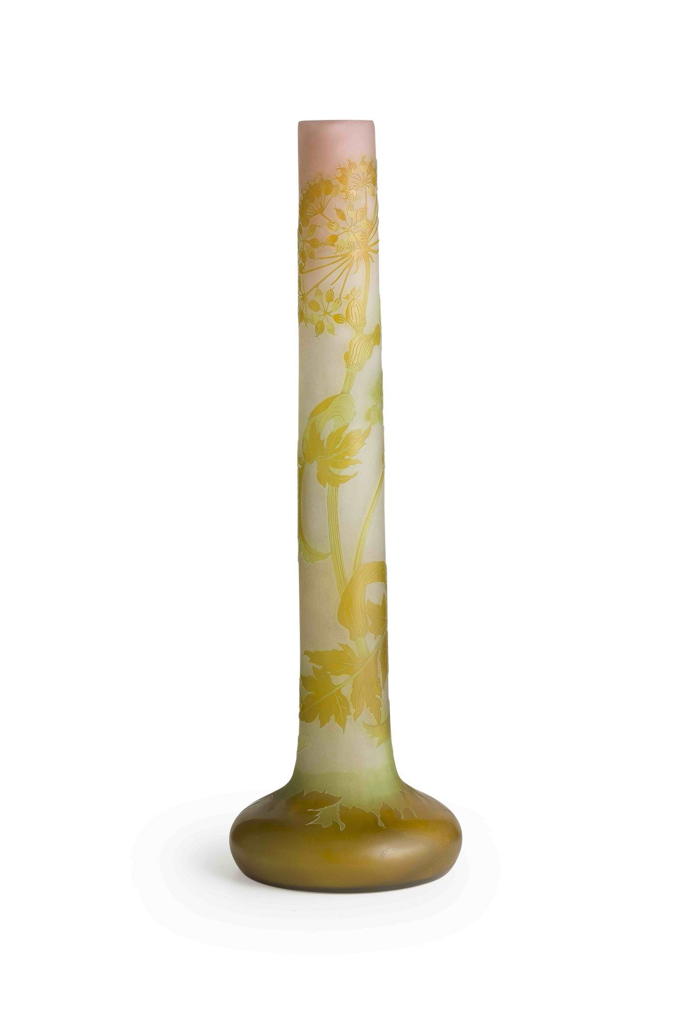 La vendita è completata da un nucleo di ceramiche e vetri tra Sette ed Ottocento, maioliche e porcellane provenienti da varie manifatture italiane e straniere, tra cui collezione di maioliche siciliane e un’ampia selezione di vetri tra Ottocento e Novecento: tra questi da segnalare due vasi Art Nouveau in vetro di Emile Gallé databili al primo decennio del secolo scorso (stimato 4.000 – 6.000 euro e 3.000 – 4.000 euro)