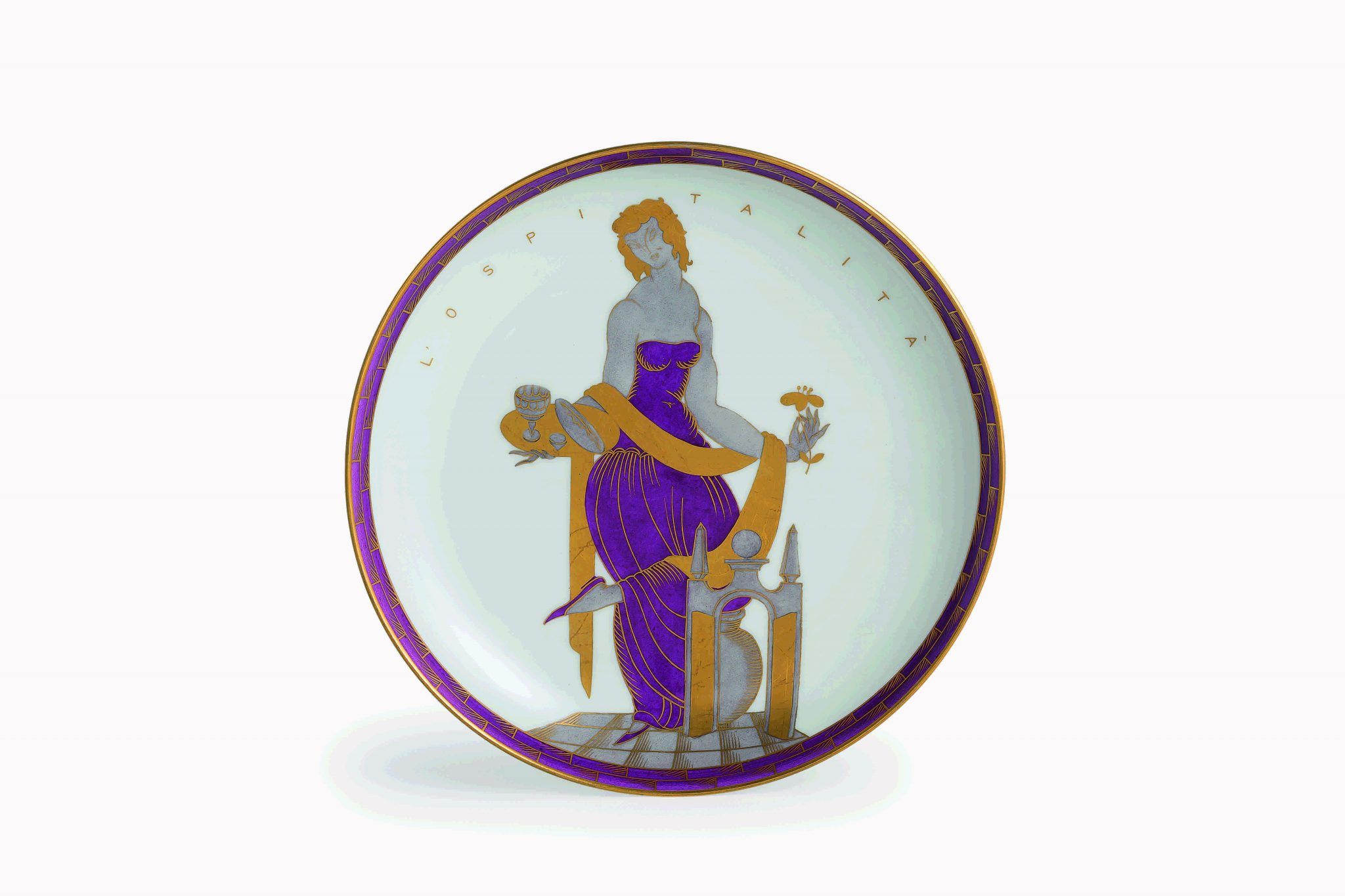 I lotti di ceramiche e vetri presentati a Genova costituiscono un interessante excursus tra materiali e fornaci diverse attraverso tre secoli di “arte del fuoco”, dal diciottesimo secolo fino al pieno Novecento. Tra le maioliche un piatto da parata pavese, decorato con un capriccio architettonico ed un molosso sul proscenio del paesaggio, databile ai primi anni del Settecento è stimato 2.200-2.600 euro, mentre, tra le porcellane del diciottesimo secolo, una figura femminile dall’antico in biscuit di Napoli, forse ispirata agli affreschi di Stabia e di un modello ad oggi ignoto agli studi è da attribuirsi, per il modello, alla attività di Filippo Tagliolini (stima 1.400 – 1.600 euro). Il vaso “istoriato” uscito dalle fornaci Molaroni all’inizio del XX secolo è elegantemente montato in metallo (stima 500 – 800 euro). Tra le ceramiche del Novecento si segnala ancora il piatto in porcellana policroma uscito dalla “Pittoria di Doccia” nel 1925 e decorato con la figura de “L’Ospitalità”, un esempio del caratteristico gusto, tipico del cosiddetto “Classicismo Italiano”, importato da Gio Ponti nelle fornaci toscane durante la sua direzione (stima 3.000 – 5.000 euro).