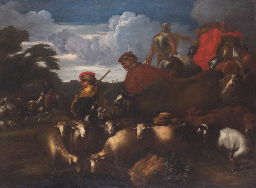 La vendita dell’8 marzo è dedicata agli antichi maestri ed ai dipinti del XIX secolo. Interessante il corpus di opere provenienti da una collezione genovese, costituitasi nella prima metà del XX secolo, dove spicca una tela ad olio raffigurante il Viaggio di Giacobbe attribuito da Anna Orlando a Giovanni Benedetto Castiglione detto il Grechetto: tela dove l’artista approfitta del tema biblico per confrontarsi con la pittura di storia, ed insieme dimostrare il proprio virtuosismo nella natura morta, il paesaggio e la descrizione degli animali (stima 20.000 – 30.000 euro).