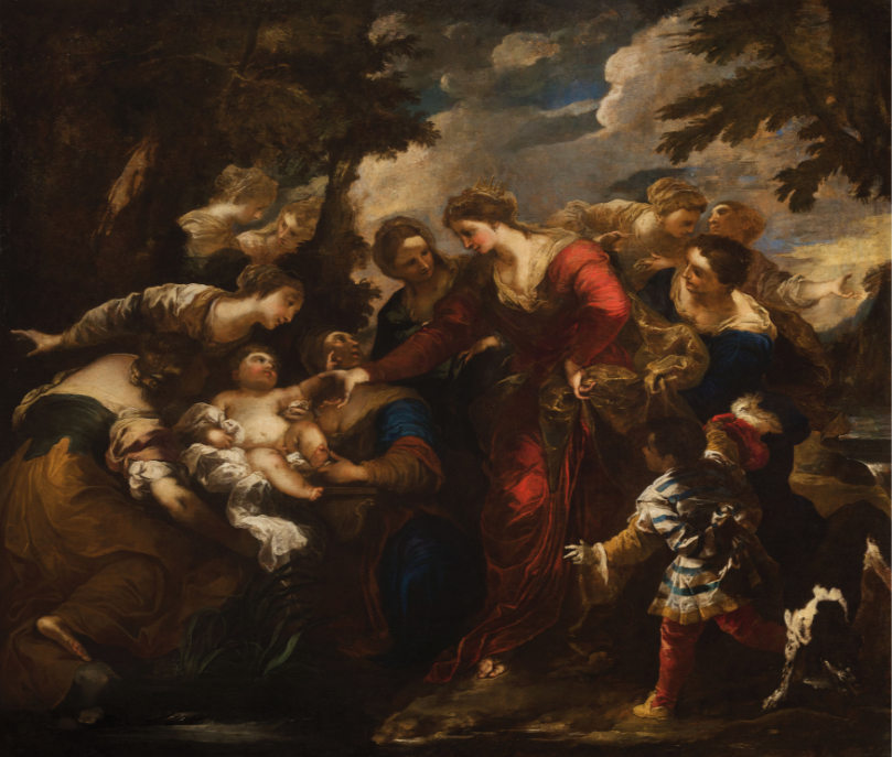 Top price dell’asta il Ritrovamento di Mosè di Valerio Castello che apparteneva al tempo dell’Alizeri all’armatore Francesco Peloso, grande collezionista vissuto dal 1767 al 1835, che la conservava nel suo palazzo genovese di Piazza San Domenico, e giunse agli attuali proprietari in seguito a vendita effettuata da eredi Peloso nel 1933 (lotto 749, stima 200.000 – 300.000 euro). È sicuramente uno dei capolavori della maturità dell’artista dove evidente appare la lezione rubensiana ma egli volge quel tumulto imperioso di forme opulente che agita il componimento rubensiano in un ritmo fresco ed agile, recuperando anzi, nell’opera del fiammingo, ed in quella del suo conterraneo Van Dyck, quegli ascendenti veronesiani che da sempre lo avevano affascinato.