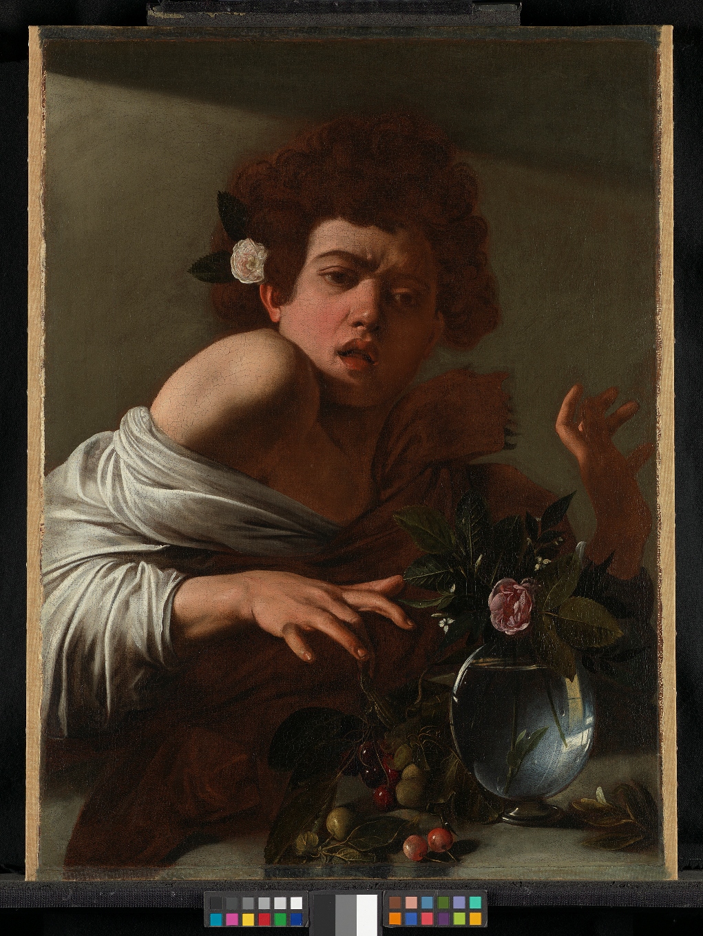 Così la visita prende piede dalla formazione romana dell’Autore, in particolare tramite le intuizioni artistiche introdotte dal Ragazzo morso da un ramarro e dalla particolare interpretazione della natura, colta ambivalentemente nella sua bellezza e nella sua inarrestabile decadenza. Il genio insuperabile del Merisi, messo in opera nella Roma di quei tempi, culla dell’arte mondiale, gli consentirono di godere di grande fama tra i mecenati e gli artisti dell’epoca.