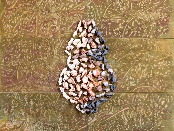 Al centro dell’ovale, “Equivalenze” (2016), fusioni bronzee di calchi in gesso di alberi. Dell’albero rimane un involucro, una replica semplificata dell’oggetto di partenza. L’intervento dell’artista ha dato vita ad una copia complementare dell’elemento vegetale, la cui forma dai richiami antropomorfi non nasconde la penetrazione umana all’interno dell’opera. Strutturalmente simili ai “Gesti vegetali” degli anni ’80, si restituisce l’intera scena alla corporeità del bronzo. Lungo le pareti della sala altre opere in cui questa forza materica trova compimento. Sopra quattro lastre di metallo sono fissati calchi in terracotta ottenuti dall’impronta del pugno dell’artista. Come nuovi fossili o conchiglie, fitomorfiche terrecotte sporgono tridimensionali dalle piastre il cui metallo ossidato si declina in colori e striature che richiamano le sfumature cromatiche di boschi e foreste.