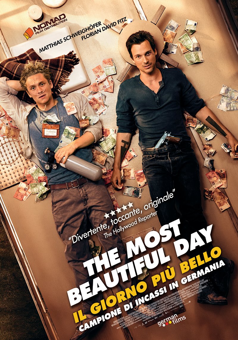 Un film che affronta, con l’arma dell’ironia e con poesia, il tema della fine della vita e del diritto alla felicità. Un road-movie alla ricerca di se stessi attraverso un’avventura che cementerà il rapporto tra i due protagonisti.The Most Beautiful Day – Il Giorno Più BelloThe Most Beautiful Day – Il giorno più bello è una travolgente commedia interpretata da due idoli del panorama cinematografico tedesco, Florian David Fitz e Matthias Schweighöfer. Al centro della storia, due giovani malati molto anti-convenzionali: l’ambizioso e bizzarro pianista Andi e lo spensierato avventuriero Benno. Non appena scappati dalla clinica, e dopo aver racimolato con destrezza il denaro necessario, Benno e Andi si mettono in viaggio in prima classe verso l’Africa alla ricerca dell’ultimo e più bel giorno delle loro vite.