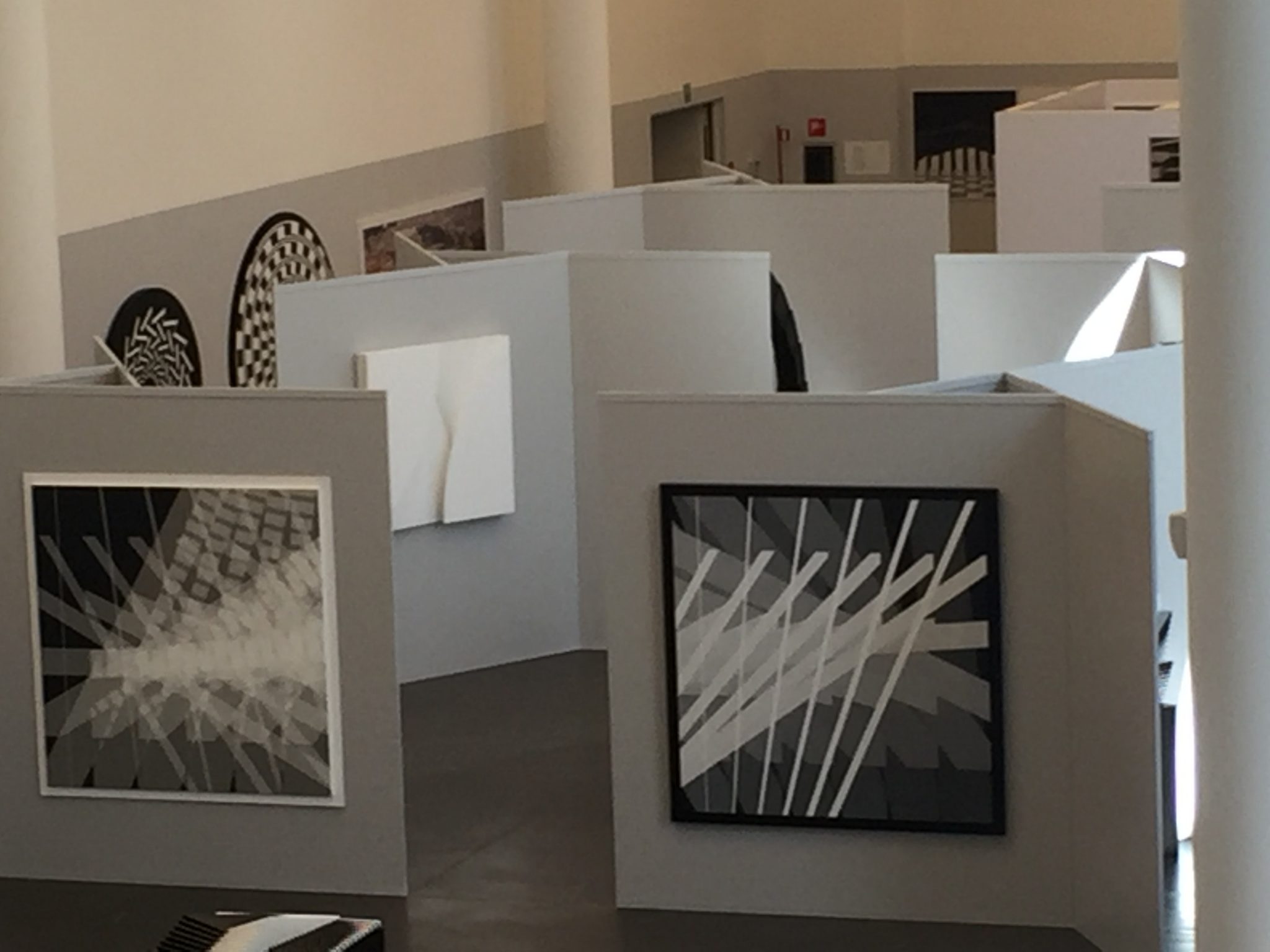 Il percorso espositivo si suddivide in più spazi: al piano superiore sono raccolte opere e pannelli esplicativi, dagli esordi degli anni ’60 con la Galleria del Naviglio a Milano, alla partecipazione alla XXXIV Biennale d’Arte di Venezia del 1968, a Documenta 6, a Kassel del 1977. Testi di critici di Umbro Apollonio, Gillo Dorfles e Germano Celant e numerosi ricordi e aneddoti scritti dall’artista.