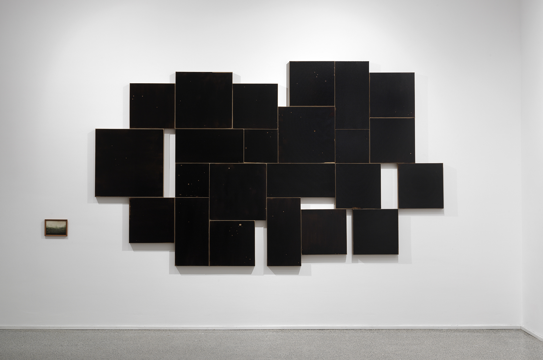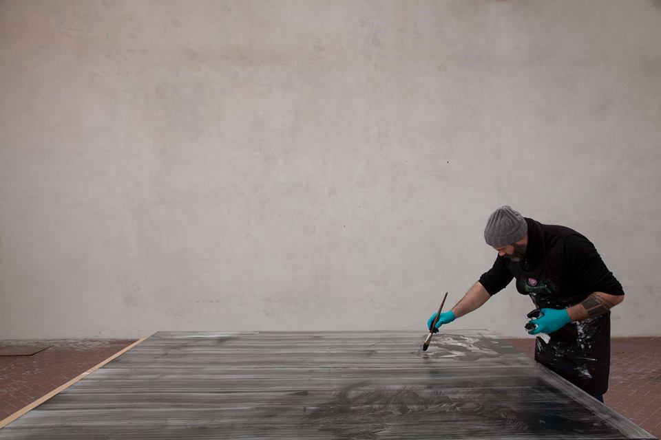 L’esigenza di Pangea è creare una serie di neri che con un gesto nitido, tramite cancellazione, mantengano una pulizia e una sintesi pittorica. L’esperimento è di togliere o cancellare tratti appena prodotti per aprire un orizzonte futuro che però amplifichi il tratto originario. La pulizia e la sintesi saranno riprodotte anche nell’allestimento museale, così che possa esserci un’armonia tra l’opera e la sua dimensione espositiva.