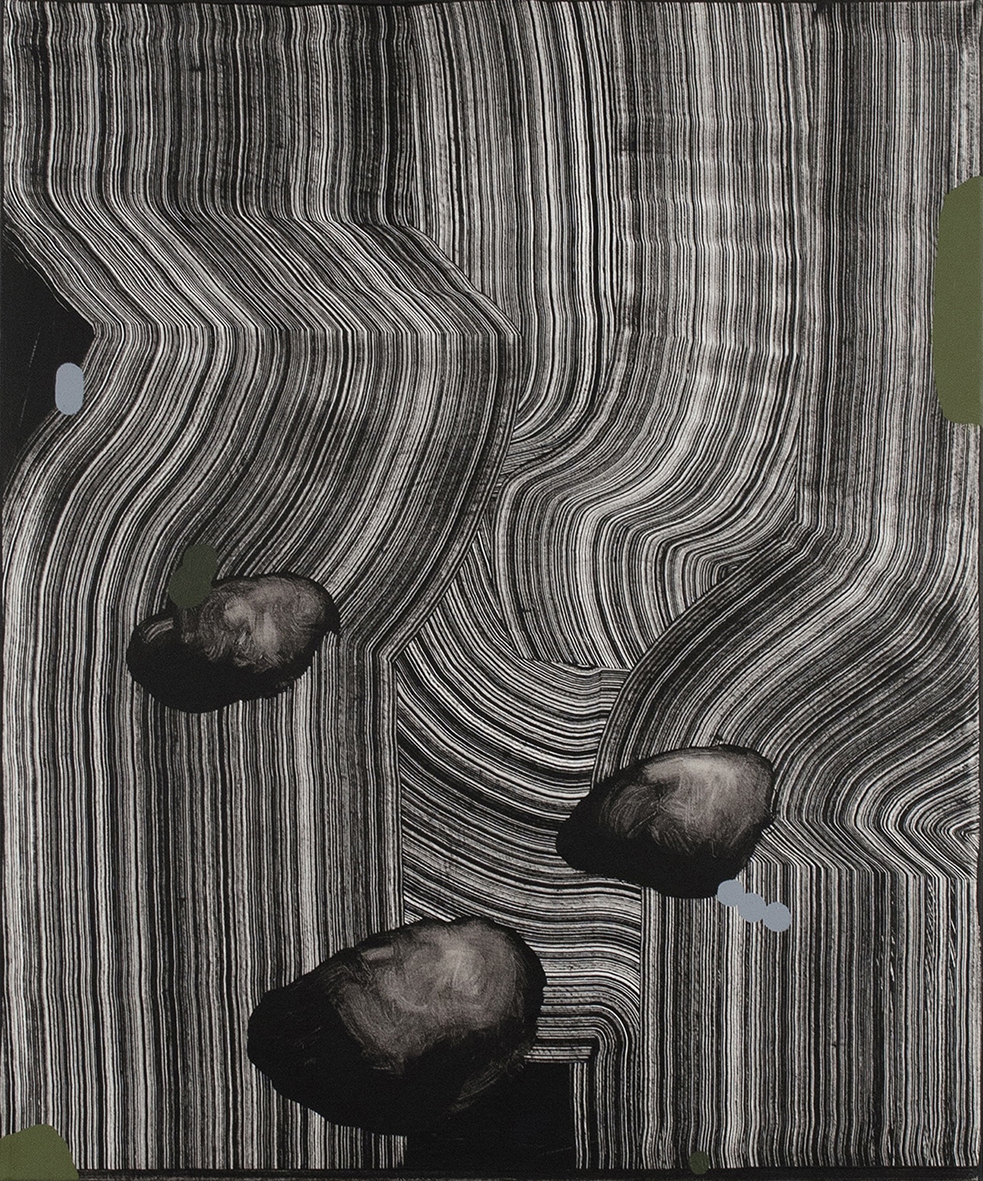 La mostra gravita intorno all’asse di sintetizzare un decennio di lavoro con la galleria Cardelli&Fontana. Inizialmente avrebbe dovuto rappresentare l’arco dei venti anni di lavoro, ma studiando un racconto preciso per ogni stanza del museo abbiamo ridotto il campo. Il titolo Derive fa riferimento alla teoria geologica che spiega la formazione dei continenti a partire da un’unica massa indifferenziata ed è una metafora del mio percorso di indagine artistica costante. La mostra è divisa in quattro tempi: un ciclo di carte della serie Humus, il ciclo di Germogli. e di stelle, una parte più antologica rappresentata da alcune variazioni artistiche e ricerche d’espressione in grandi dimensioni e l’ultima parte, inedita, la serie Pangea.