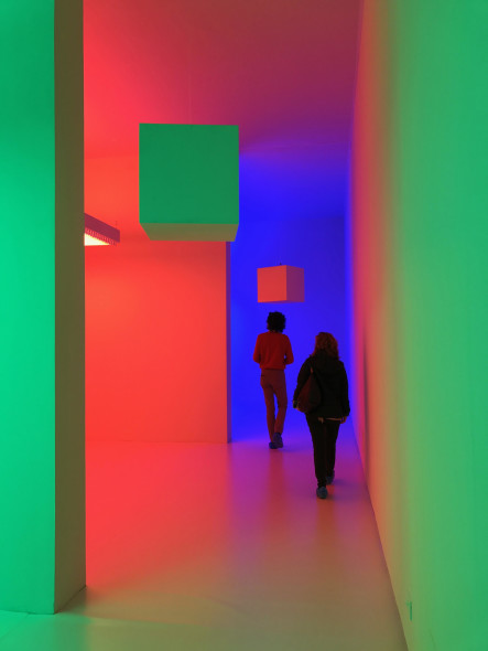 La sede espositiva del Castello di Rivoli raccoglie in prevalenza opere d’arte contemporanea, dagli anni Sessanta a oggi: da Alighiero Boetti a Damien Hirst, da Andy Warhol a Anish Kapoor, da Gerhard Richter a Gilberto Zorio, da Giorgio Griffa a Tony Cragg, fino alle ricerche più recenti di Heather Phillipson e Liu Wei che indagano il “colore digitale”. Mentre alla GAM di Torino va in scena la parte più storica della mostra: dai futuristi Balla, Depero, Russolo ai fauves nella figura del capostipite Henri Matisse e di Sonia Delaunay, da Paul Klee a Vasilij Kandinskij, da Victor Vasarely alla riscoperta di Hilma af Klint; ma anche Mark Rothko, Carla Accardi, Lucio Fontana, Enrico Castellani, Yves Klein… fino a Nicola de Maria e il psichedelico Jim Lambie. Passando attraverso le ricerche optical del Gruppo Mid, dell’artista venezuelano Carlos Cruz-Diez e dell’americano Turrell.