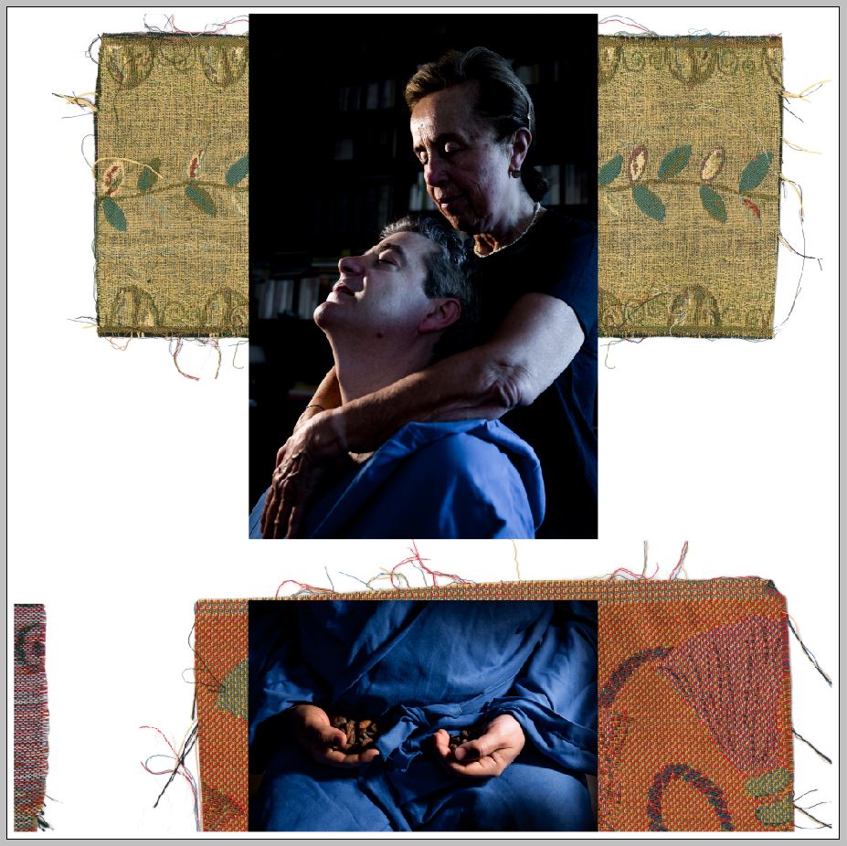 Gli elementi del tessuto richiamano, nella finzione fotografica, l’idea del tattile. I tessuti si inseriscono nel composit fotografico come elementi disambigui perché ingannano l’occhio, dato che sono ingranditi molte volte, ci ricordano, negandosi in questa accezione, come sia importante e piacevole l’esperienza del toccare. Ho scelto dei tessuti antichi perché da sempre appartengono all’espressione della rappresentazione scultorea e da sempre esprimono la nostra seconda pelle. Le foglie e la vegetazione sono stati, e sono tutt’ora, uno degli componenti fondamentali per la produzione del tessuto e che ci legano indissolubilmente ancora una volta al mondo vegetale. I tessuti, le foglie, gli elementi vegetali, nonché le fotografie delle donne non vedenti ritratti in modo familiare da bambine, sono contenute in una teca light-box come elementi fisici reali.