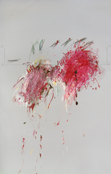 I raffinati scarabocchi di Twrombly custodiscono questioni ancestrali e istanze profondissime. Questi segni –pregni di mistero e fascinazione- incarnano l’origine del linguaggio, e quindi del pensiero umano: una sintesi frutto del connubio fra l’automatismo grafico dell’Action Painting di Pollock e i racconti mitici posti alla base della civiltà mediterranea. Si sviluppa così un disarmante cortocircuito fra tradizioni letterarie del vecchio continente e cultura figurativa del nuovo mondo, racconti millenari e istanze moderniste, figurazione e astrazione, ragione e sentimento.