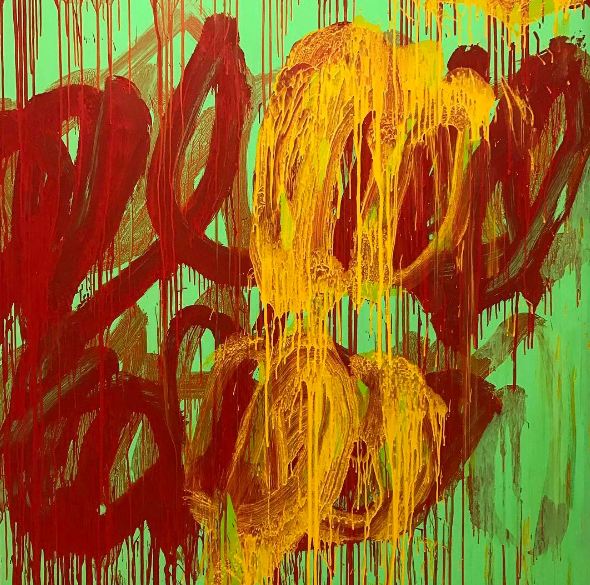 Grafie impazzite e chiazze di colore irrompono su mastodontiche tele, dando vita a poesie per immagine che sfuggono alle briglie delle codificazioni enciclopediche e alle gabbie delle correnti artistiche.