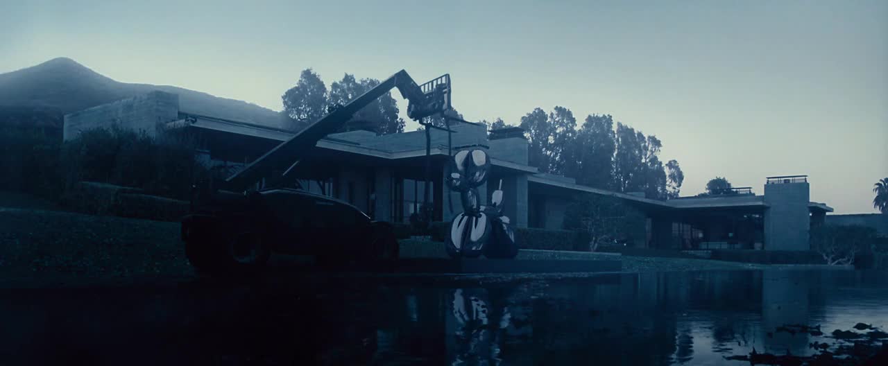 In una delle inquadrature iniziali del film, un Balloon Dog di Jeff Koons campeggia solitario nel cortile di casa sua, quasi a riflettere la sua costosa solitudine. L’atarassia è un lusso.