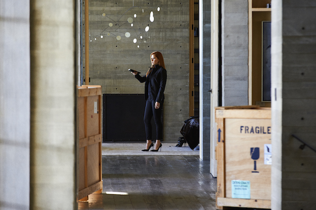 Il suo mondo interiore rispecchia quello che la circonda: il libro scuote Susan e la risveglia dal suo torpore emozionale – un quadro caotico da Sterling Ruby si profila sullo sfondo del salotto.