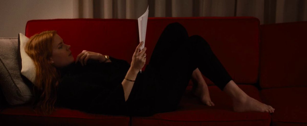Non mancano nemmeno le citazioni ai grandi registi del passato, come ad esempio Alfred Hitchcock. Amy Adams sdraiata sul divano intenta nella lettura del romanzo è un omaggio a Intrigo Internazionale, l’inquadratura, la composizione e la palette di colori difatti riprendono quasi alla lettere quelli di Eve-Marie Sant impegnata nello stesso passatempo.