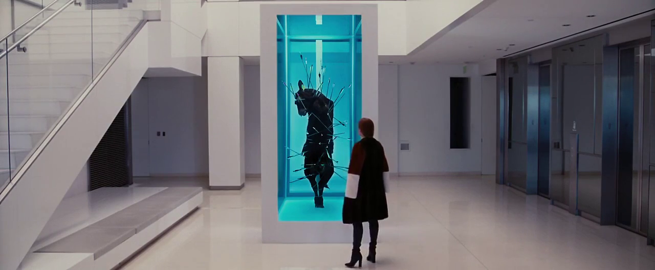 Sempre in salotto troviamo un Calder (23 Snowflakes) e poi, disseminati in tutto il film anche Damien Hirst (Saint Sebastian, Exquisite Pain), Motherwell (Untitled (Elegy)), Schnabel (Untitled) e Andy Warhol (Shadow).