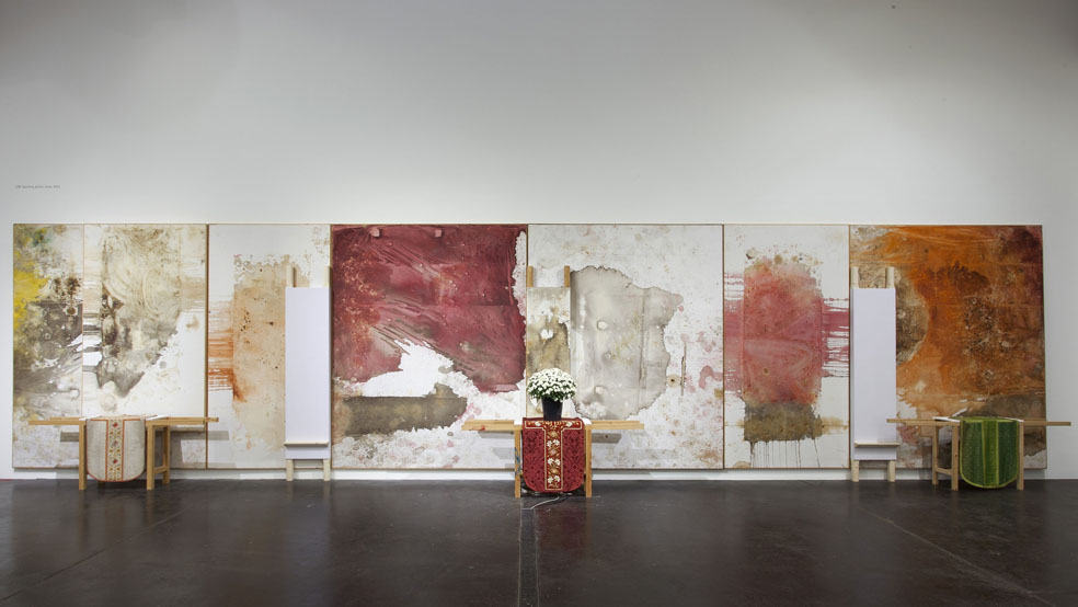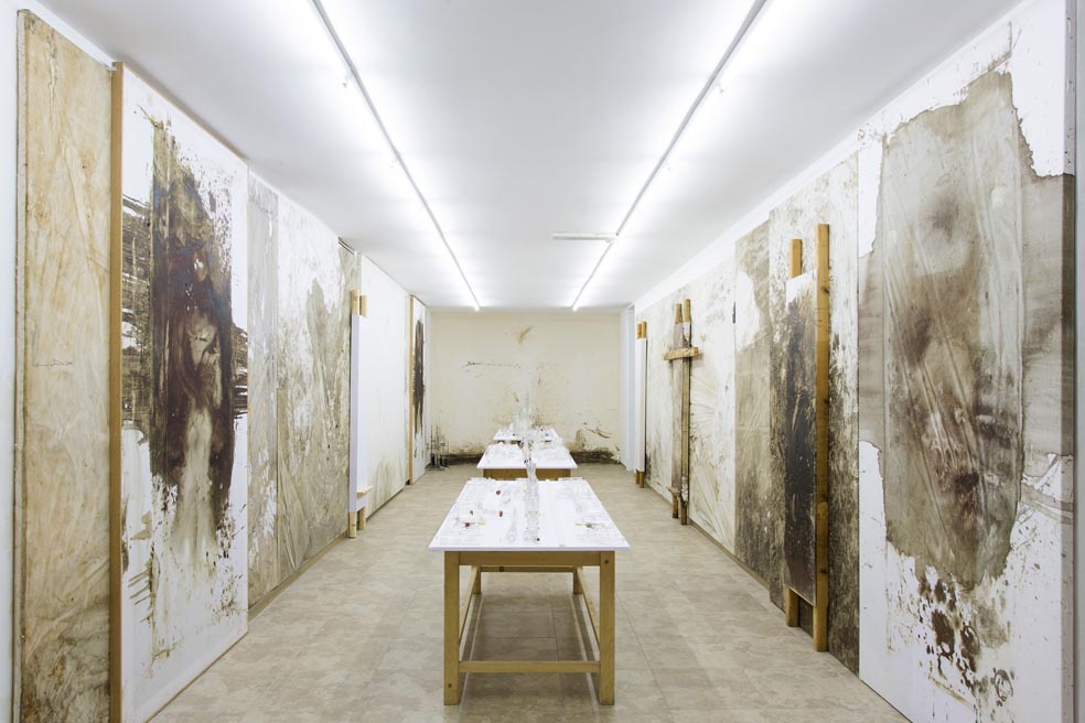 La mostra presenta alcune celebri installazioni di Nitsch come 18b.malaktion, 1986 Napoli Casa Morra e i vari volumi scritti da Nitsch nel corso degli anni, a testimonianza della sua vasta attività teorica.