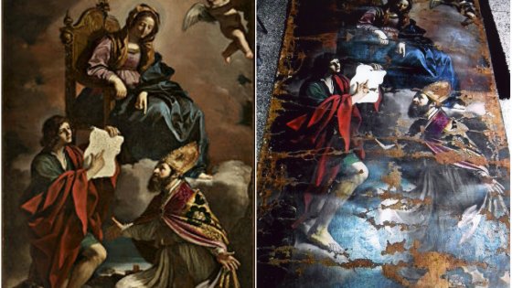 La tela del pittore bolognese è stata rubata nel 2014 dalla Chiesa di S. Vincenzo a Modena, ed era stata offerta in vendita da tre ricettatori a un ricco imprenditore marocchino che, riconosciuto il valore dell’opera, ha denunciato i falsi mercanti d’arte. Tre uomini sono stati arrestati dalla polizia giudiziaria di Casablanca, mentre tentavano di vendere il capolavoro del pittore seicentesco. Secondo i media locali, l’opera è stata offerta per 940 mila euro. Nel momento in cui è stato scoperto il furto dell’ opera a Modena, tutto il mondo si è mobilitato per far sì che il capolavoro italiano venisse ritrovato al più presto. Nessuno avrebbe mai immaginato di ritrovarlo in un quartiere popolare di Casablanca, dove i tre ricettatori probabilmente lo hanno tenuto nascosto. La tela misura 293 cm x 185 cm circa, ridotta purtroppo in queste condizioni.