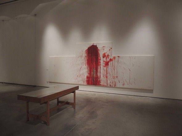 Questo per quanto riguarda l’Azione. La mostra del Ciac di Foligno è una documentazione dell’Azione. Lo stesso Nitsch ha spiegato in occasione della inaugurazione che questa esposizione non può mirare alla “catarsi” ricercata dall’artista, perché non sono utilizzati i cinque sensi.
