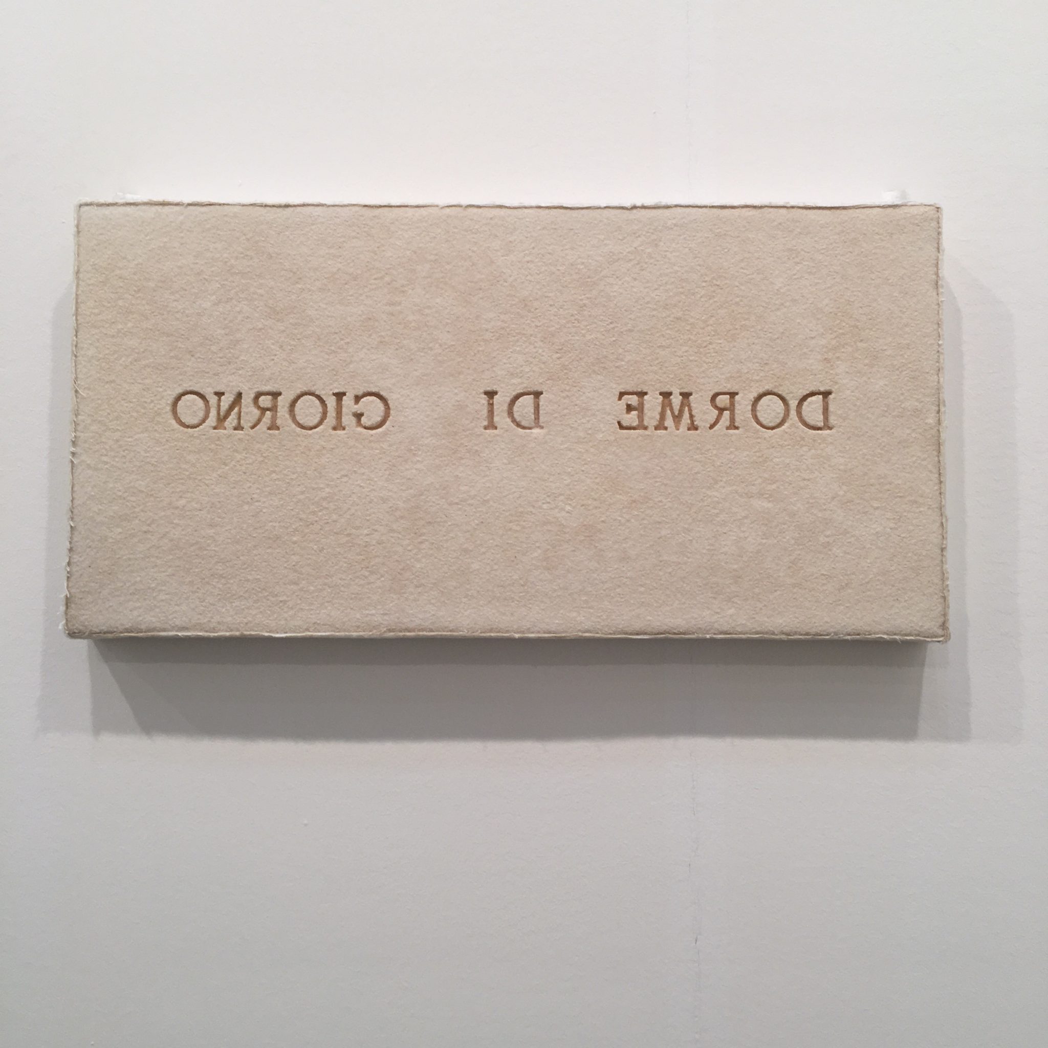 Lia Rumma presenta una fotografia del 2013 e un video del 2009 di Marina Abramovic. Due fotografie di Ugo Mulas, un neon di Alfredo Jaar. Molto interessanti le opere di Luca Monterastelli, artista italiano classe 1983 con una carriera in netta ascesa (già presente nella scorsa Biennale veneziana, Padiglione Italia, curato da Vincenzo Trione). Giò Marconi sprizza di colori con le opere di Dasha Shishkin che oscillano dai €14’000 ai €40’000. Due opere di Pier Paolo Calzolari datate 1980 e degne di nota sono esposte all’interno dello stand di Marianne Boesky. Dorme di giorno (€320’000) e una copia in inglese, Sleep by night, non in vendita.