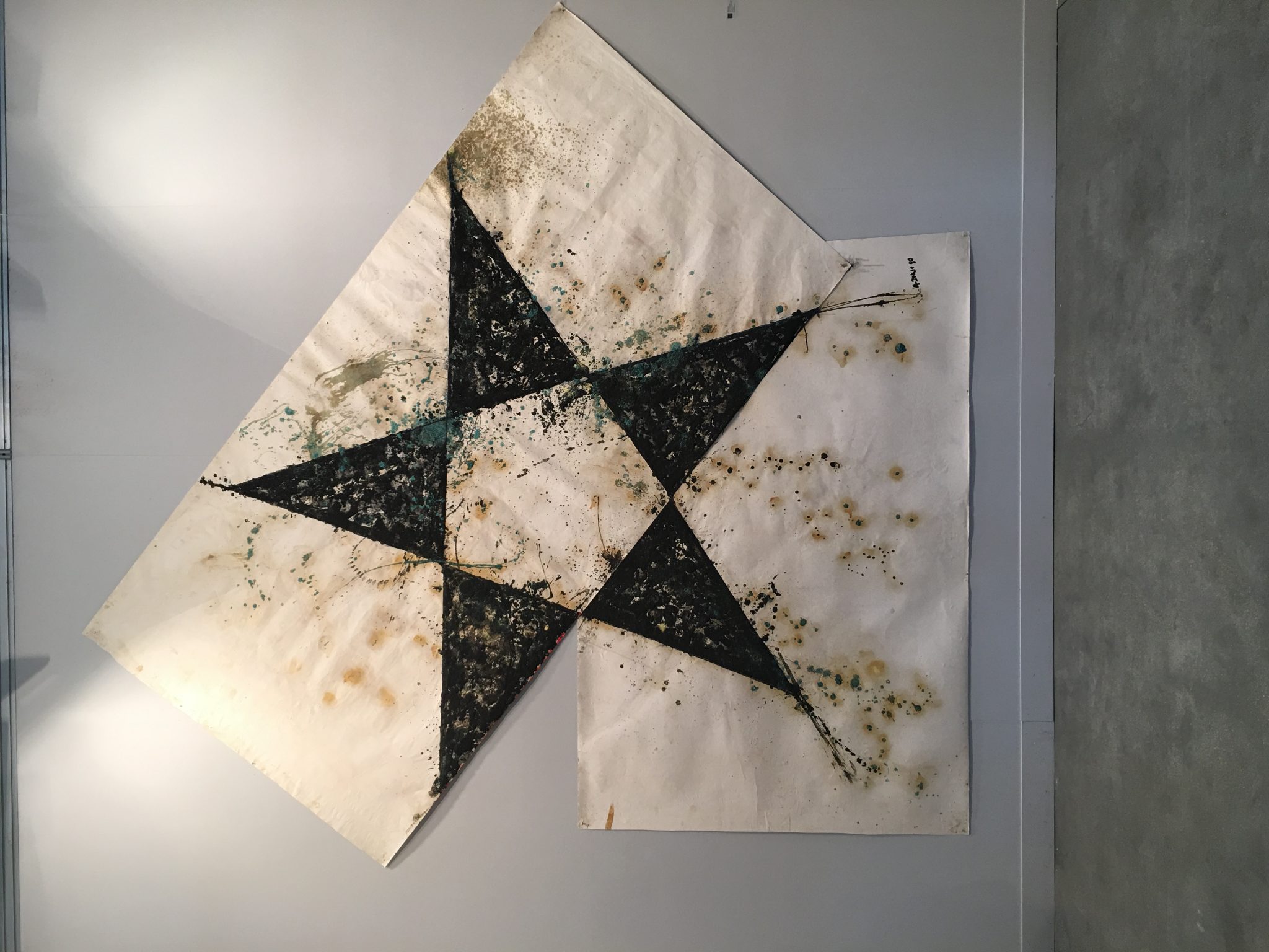 Tempera e vernice spray su carta cotone Fabriano su tela / 190 x150 cm