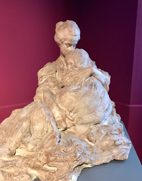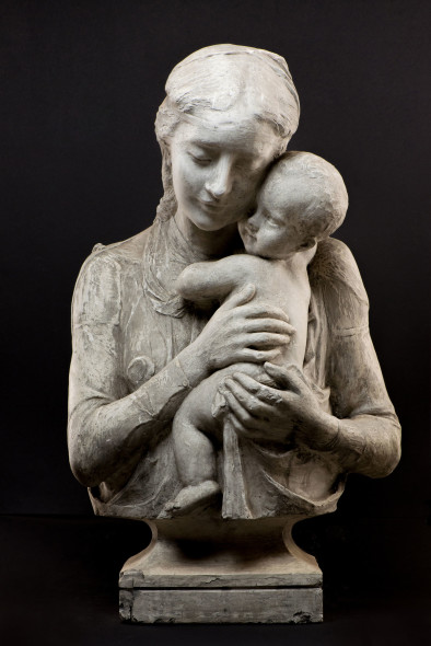 Tuttavia, l’universo che più appartiene alla donna è quello degli affetti. Maternità e amore passionale. L’abbraccio della splendida madre in gesso di Giulio Branca esprime la gioia della Maternità nel gesto della donna che stringe forte a sé il bambino. Il bacio de Il convegno (1918) di Ambrogio Alciati -immagine guida della mostra-, cattura lo spettatore e lo “costringe” a vestire i panni del voyeur che spia quel romantico incontro. L’abbraccio ostacolato. Il dipinto si fa simbolo di una passione che supera qualunque limite. Amor vincit omnia. I colori chiari invadono lo spazio pittorico rendendo l’atmosfera della scena pari a quella del sogno, un idillio che si consuma fuori dal tempo e dallo spazio.