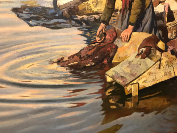L’umile lavoro delle donne. L’opera monumentale Alla Vanga (1890) di Arnaldo Ferraguti -patrimonio del Museo-, è un manifesto del realismo sociale, rappresenta il ruolo di giovani donne, ancelle, nella preparazione del terreno e del rifornimento dell’acqua. Altre opere connotate dalla stessa “denuncia” sociale iperrealista di Ferraguti catturano lo sguardo del visitatore, in primis Le lavandaie a Pallanza (1897). Le donne svolgono il loro compito, inginocchiate sulla riva del lago per ore a insaponare e strizzare i panni dall’acqua gelida. Una fatica pari all’impegno e alla maestria del pittore nel rendere i dettagli in una maniera così nitida da sorprendere il fruitore.