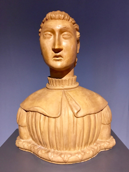 14 figure femminili di Arturo Martini (1889-1947). Il lirismo delle sculture martiniane dona eleganza e forza alle figure femminili. Busto di Fanciulla (1921) -realizzato nel periodo in cui apparteneva al gruppo Valori Plastici- è l’immagine materica di una forma ideale. L’ispirazione dal busto rinascimentale rende l’immagine statuaria: una fanciulla austera e composta testimonia quel “Ritorno all’ordine” che caratterizzò l’inizio del ‘900 italiano.