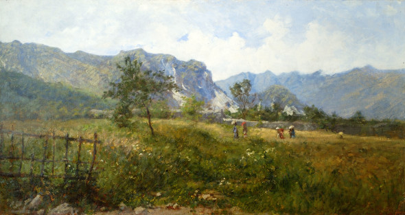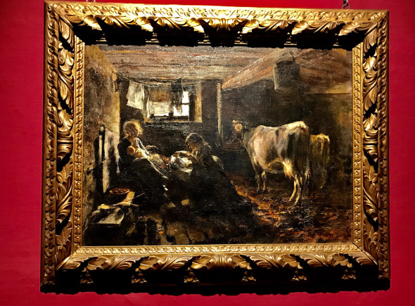 Un viaggio attraverso i luoghi nei quali la donna di fine Ottocento conduceva la sua esistenza. Passando dall’intimità della casa e del giardino, al lavoro nei campi o nella stalla. La Vita umile di Gian Maria Rastellini, un olio su tela del 1892-93, rappresenta due figure femminili in una stalla mentre, cercando un po’ di calore, si dedicano alla cura dei neonati. Le Cave di Baveno (1881) di Guido Boggiani raffigura un gruppo di signore, certamente di un’altra classe sociale rispetto alle precedenti, intento a passeggiare nella zona delle cave. Il dipinto di Boggiani è intriso di luce: si impone un’atmosfera che assorbe cromaticamente le figure femminili.