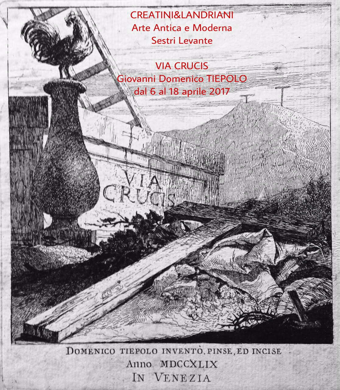 Sestri Levante accoglie la VIA CRUCIS di Giandomenico Tiepolo in mostra alla galleria Creatini&Landriani, dal 6 al 18 aprile 2017. L’opera è tra le prime incise dal Tiepolo e traduce in controparte all’acquaforte la serie omonima di dipinti eseguiti nel 1747 per l’oratorio del Crocifisso della chiesa di San Polo in Venezia su committenza del parroco Bartolomeo Carminati.
