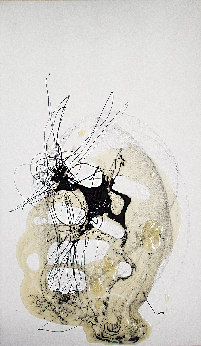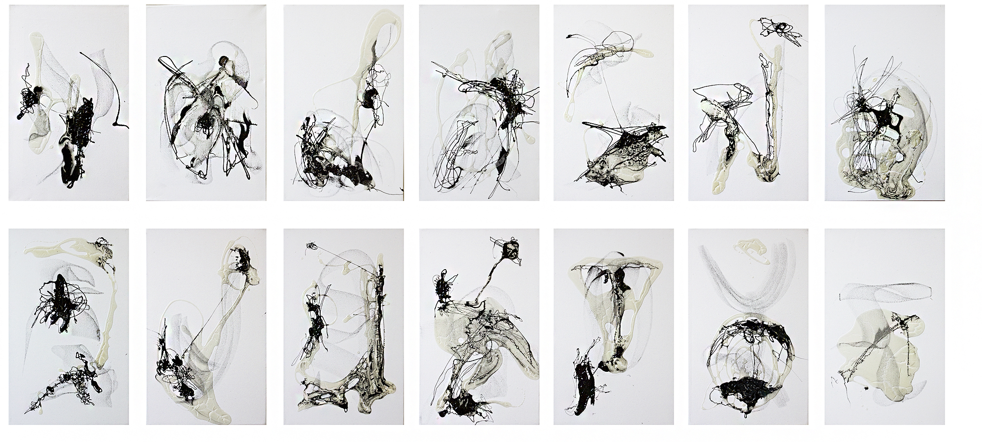 Segni neri su una superficie bianca raccontano una storia in quattordici tappe. Le forme sono grumi di bitume, memorie di graffissi e aloni. La mostra si inserisce come tappa conclusiva di un percorso che ha chiamato l’artista italoargentino a confrontarsi con ipotesi per la riqualificazione dell’antica chiesa francescana di Santa Maria della Misericordia.