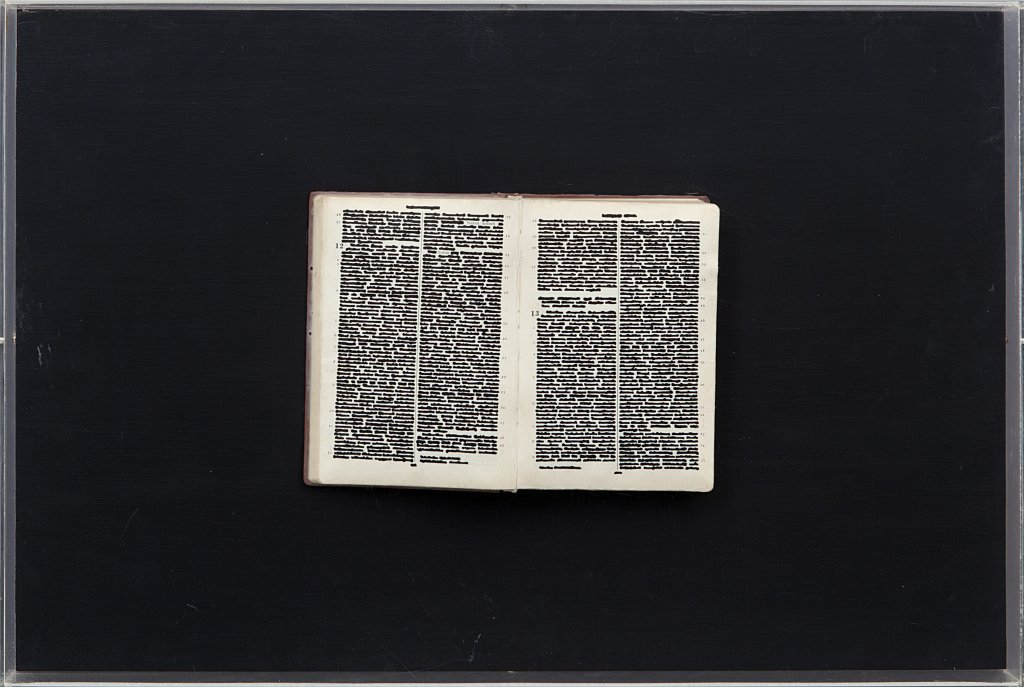 Tra i nomi spicca Emilio Isgrò con le cancellature eseguite su una Bibbia in lingua tedesca (Natan sprach, 1971, china su libro tipografico in box di legno e plexiglass cm 40×60) che stima 30-33 mila euro.